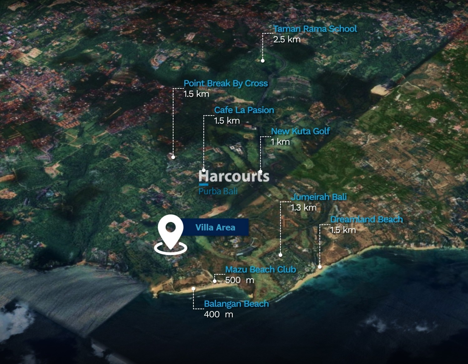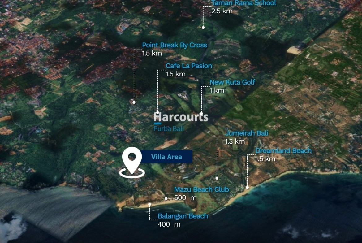 Nearby: Balangan Beach 400 m, Mazu Beach Club 500 m, New Kuta Golf 1 km, Jumeirah Bali 1.3 km, Dreamland Beach 1.5 km, Cafe La Pasion 1.5 km, Point Break By Cross 1.5 km, Taman Rama School 2.5 km