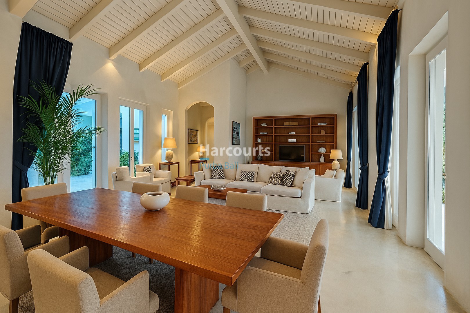 Painstakingly reimagined by its British-Indonesian owners, renowned for their work on Khayangan Estate and global luxury furniture brand Old Java, Villa Santorini blends elegant Mediterranean aesthetics with handcrafted Javanese teak accents, vaulted arches, and breezy white-and-blue interiors. No detail has been spared — this is a villa that lives and breathes light, air, and texture.