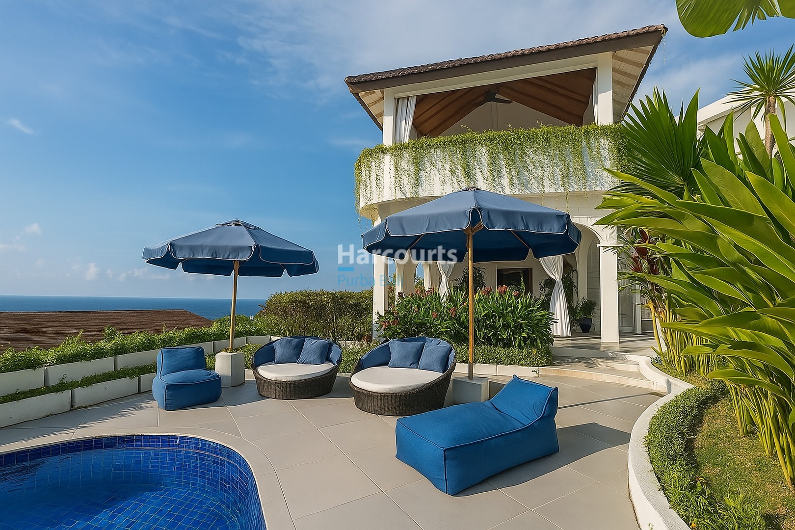 This villa is a masterfully renovated luxury residence inspired by the iconic Greek island, perched high on the Bukit peninsula on the hill behind Bingin with sweeping 180-degree views of the Indian Ocean, from Jimbaran Bay to East Java.
