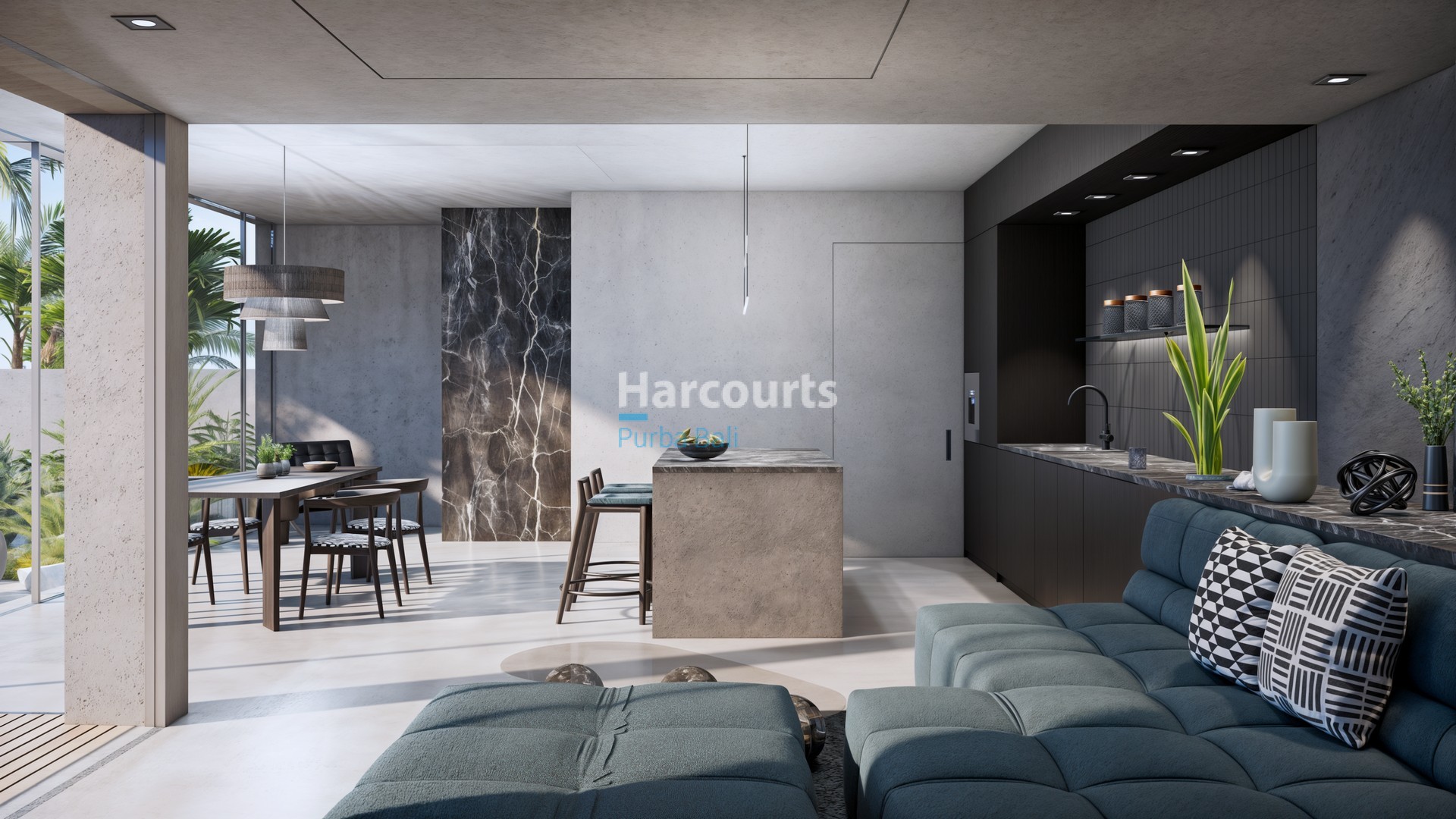 Each one-bedroom villa is thoughtfully crafted across 95.5 sqm of refined living space on a 231 sqm plot, with a clean, contemporary aesthetic that complements the natural beauty of the surrounding landscape. Open-plan interiors flow seamlessly between living, dining, and kitchen areas, enhanced by floor-to-ceiling glass panels that invite ocean views into every corner. The bedrooms offer generous proportions, spa-inspired bathrooms with rain showers, double sinks, and a bathtub, while the fully equipped kitchen and open/close living concept ensure both comfort and versatility.
