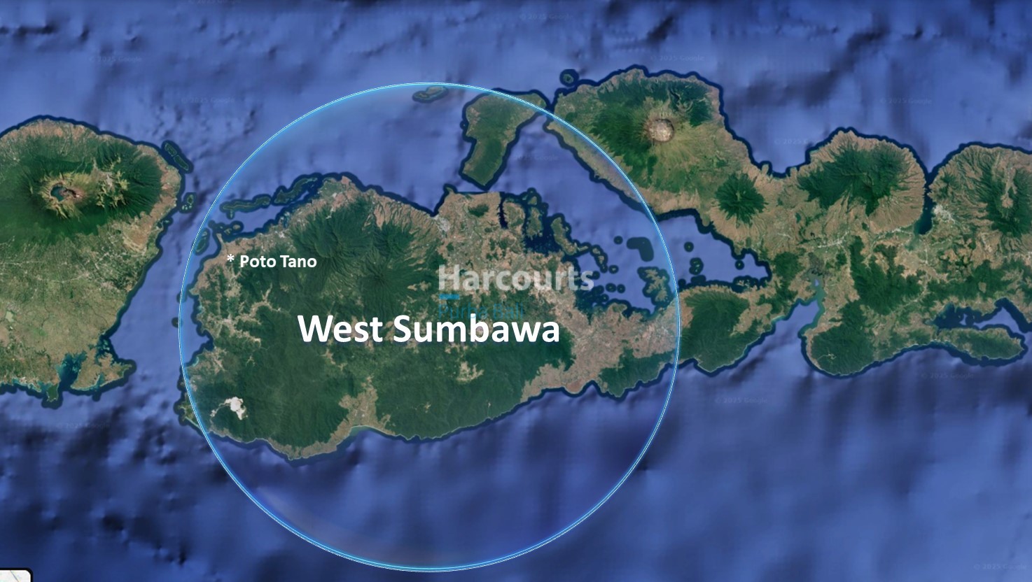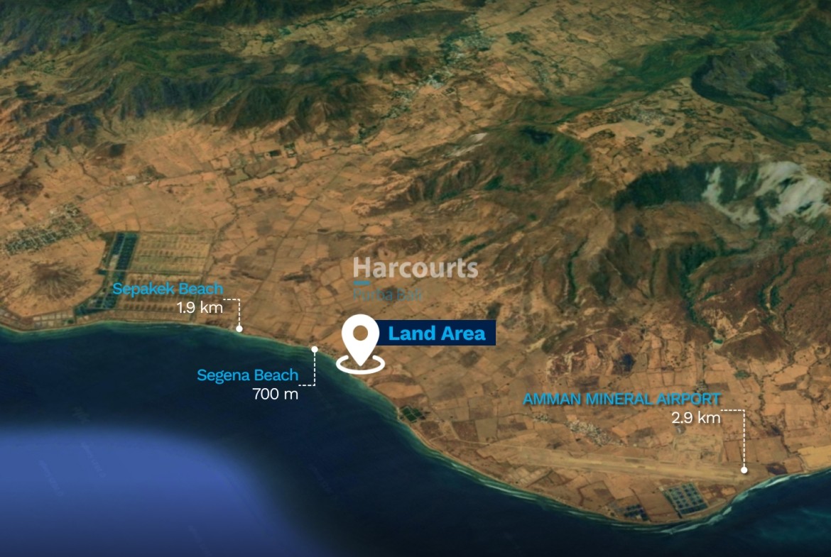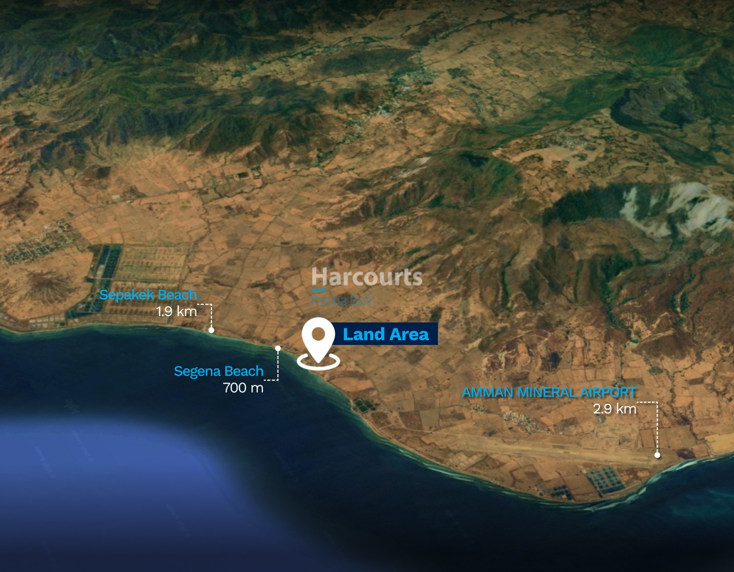 Captivating ocean, islands, sunset and Mt Rinjani views towards the west with an amazing rugged and rolling hinterland vista in an almost 180 degree arc to the rear. Extremely strategic location with only a short drive (2.5 kilometres) to the Poto Tano ferry harbour logistically essential regards building supplies etc for not only West Sumbawa but Sumbawa in general. And just a kilometre to the soon to be finished international airport certain to be an absolute game changer for the islands tourism asperations. Fly in to the airport, hop off the plane and be on-site the property in a matter of minutes…