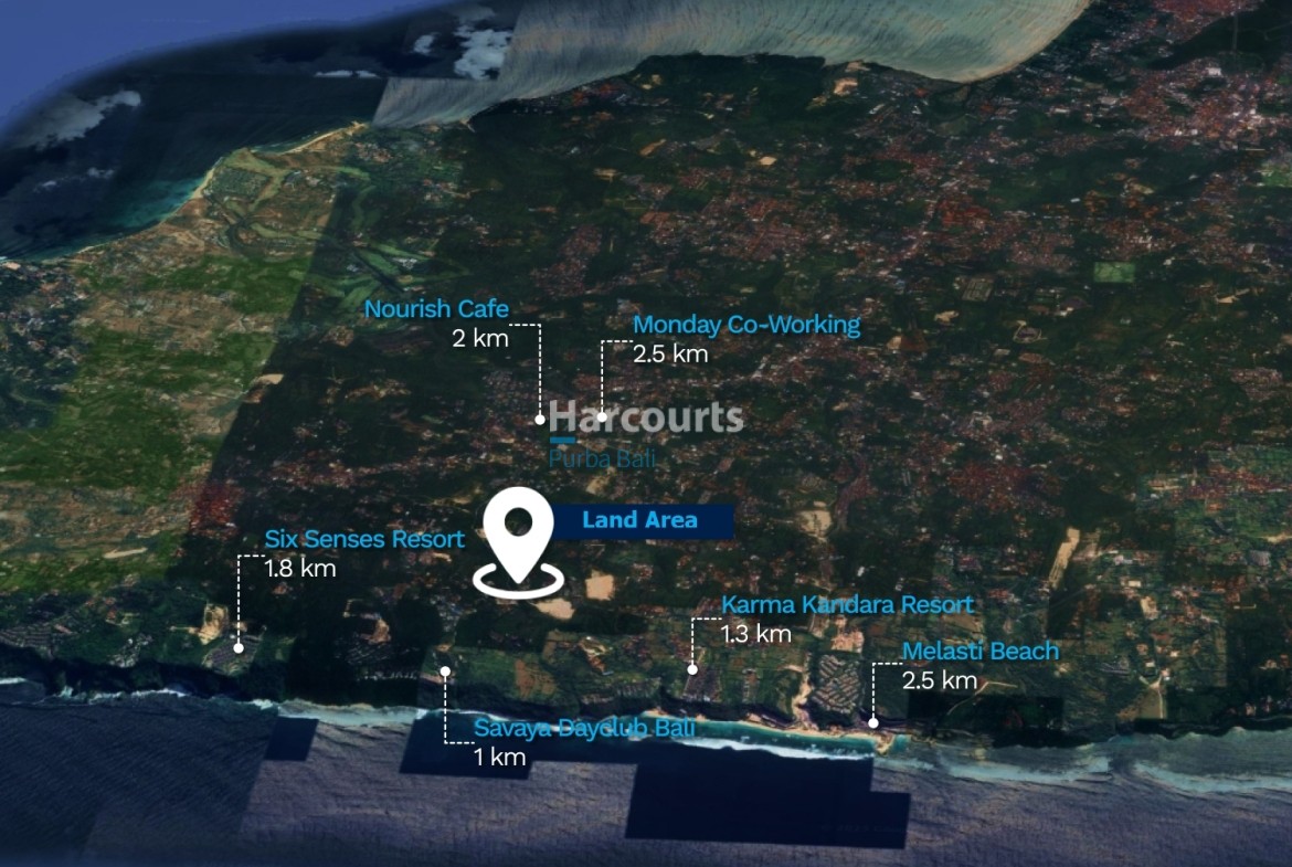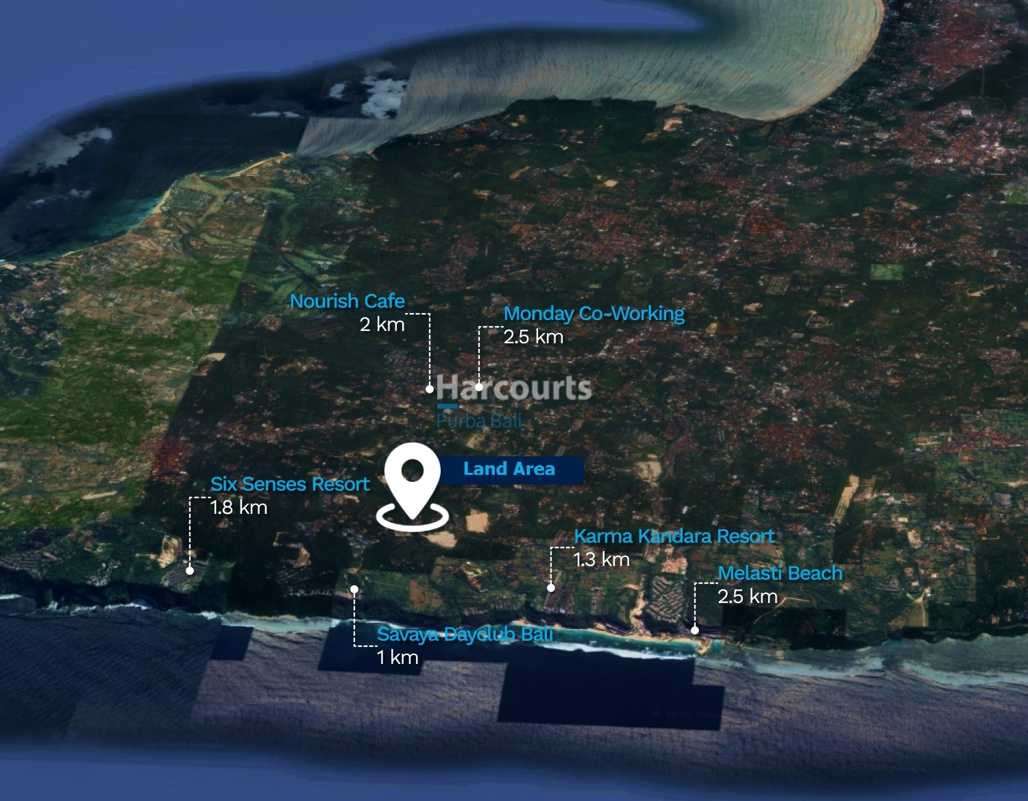 Nearby: Savaya Dayclub Bali 1 km, Karma Kandara Resort 1.3 km, Six Senses Resort 1.8 km, Melasti Beach 2.5 km.