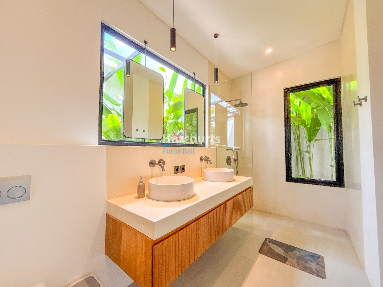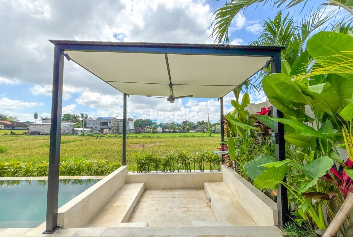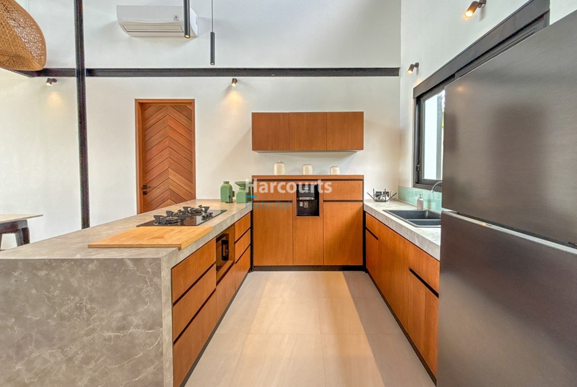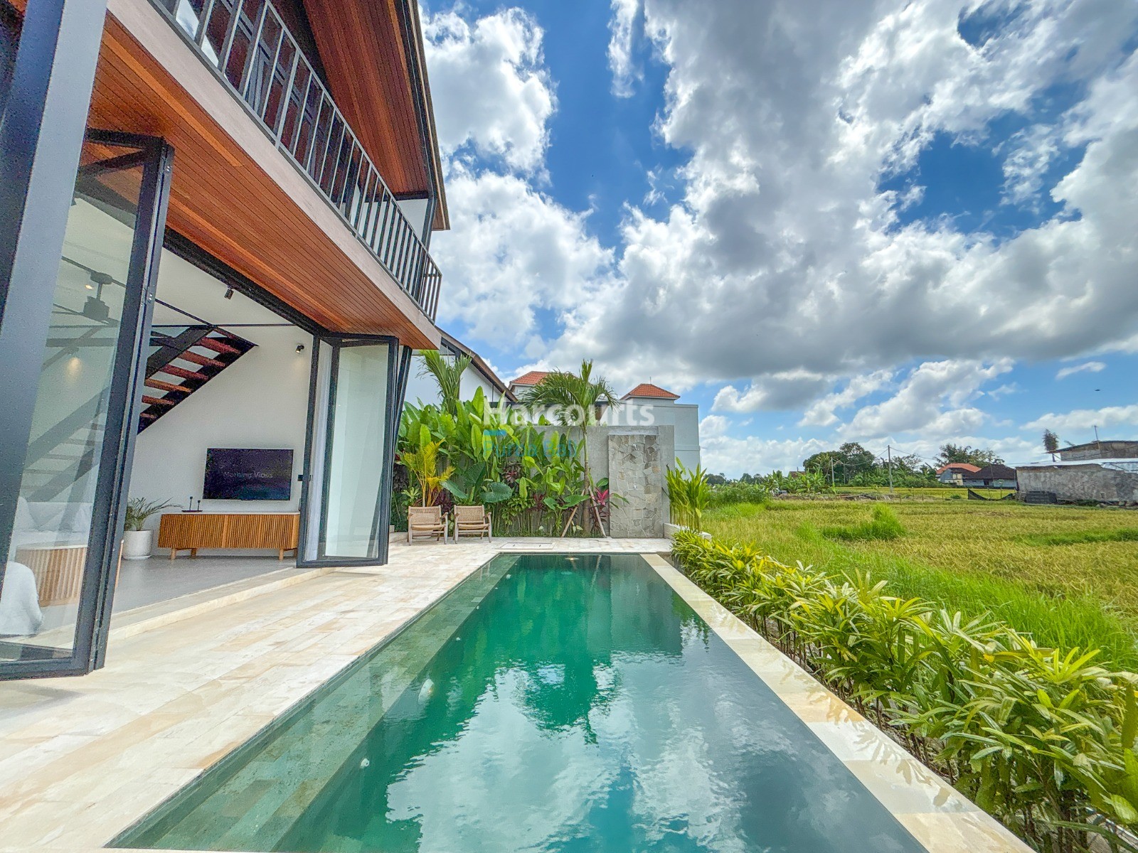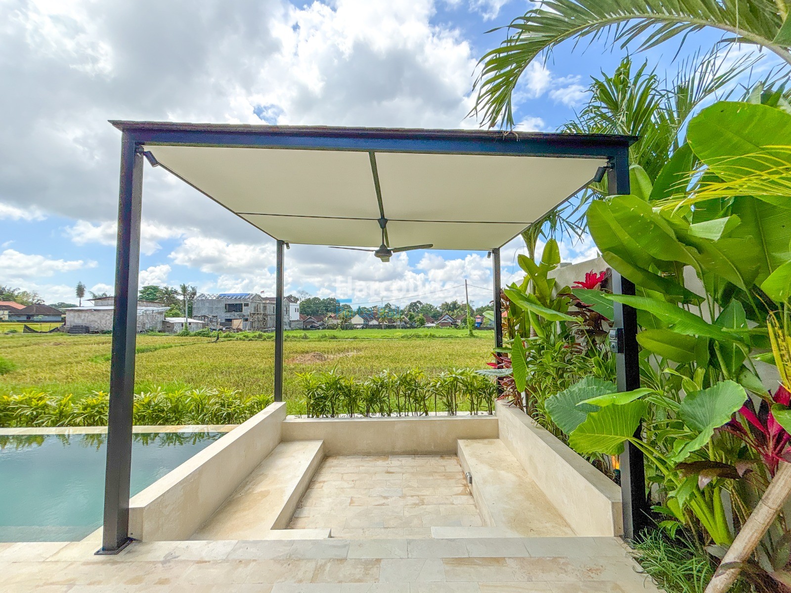 Discover this brand-new villa available for yearly rental in the serene rice fields of Kaba Kaba. Completed in 2025 and offered fully furnished, the 165 m² build houses two bedrooms and two bathrooms with a distinctive mezzanine level that overlooks the open-plan living space—ideal as a home office, media nook or extra guest area—and frames peaceful views across the paddies.