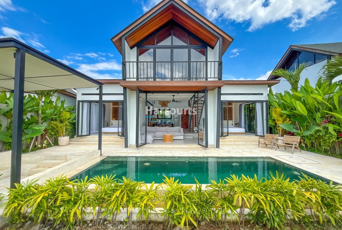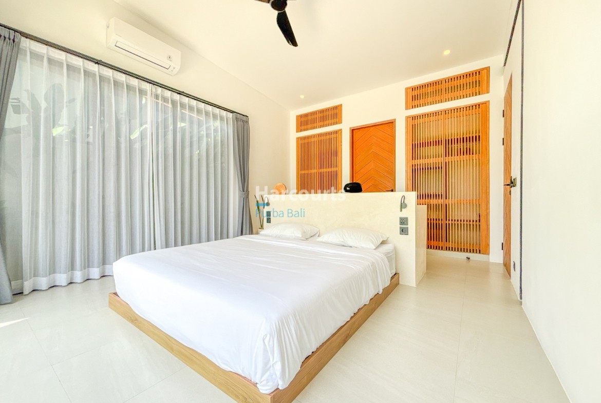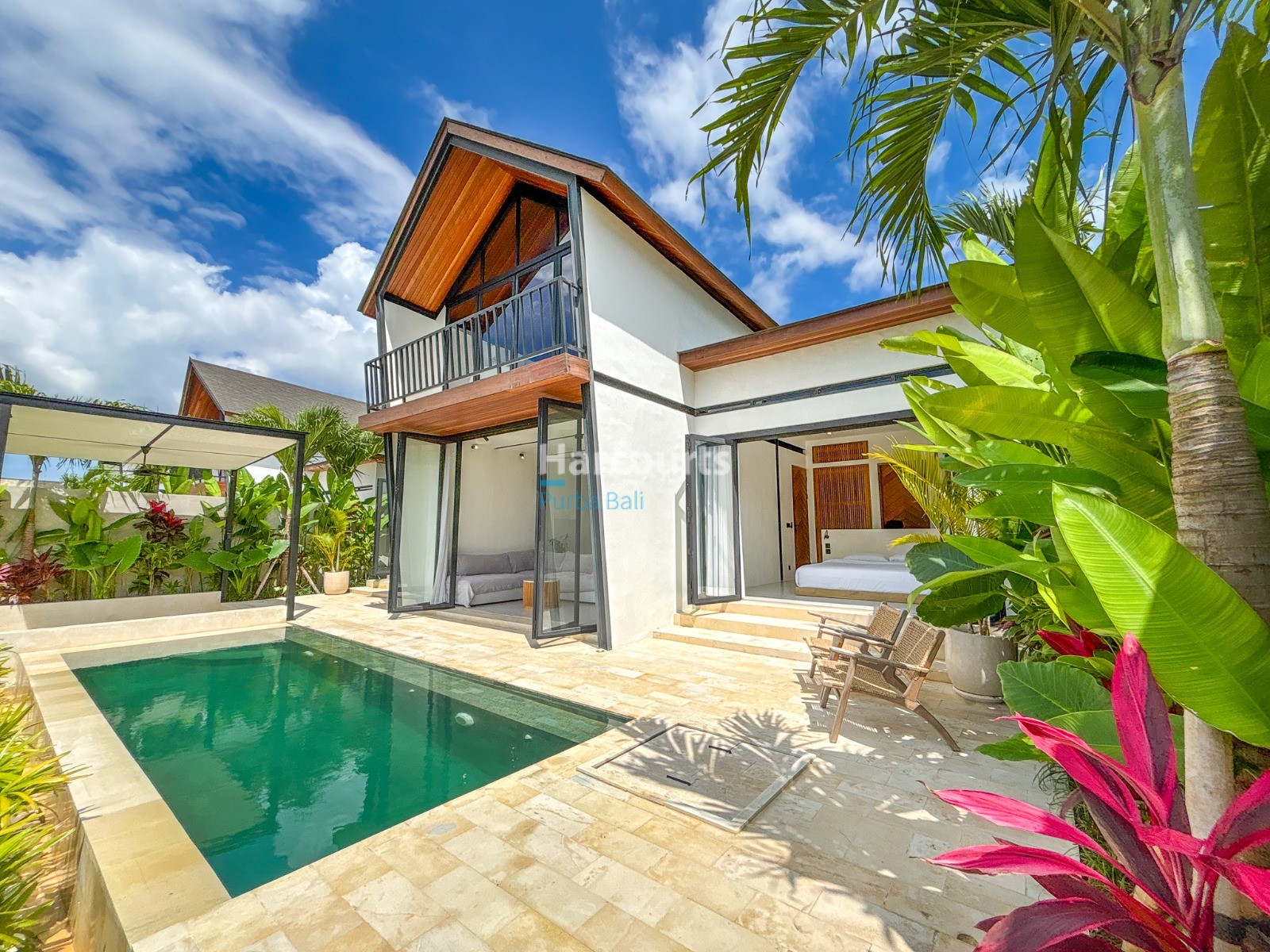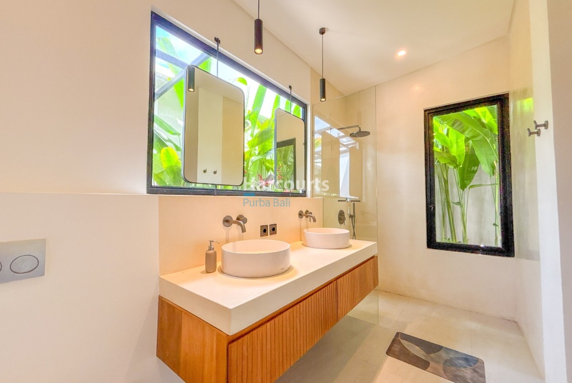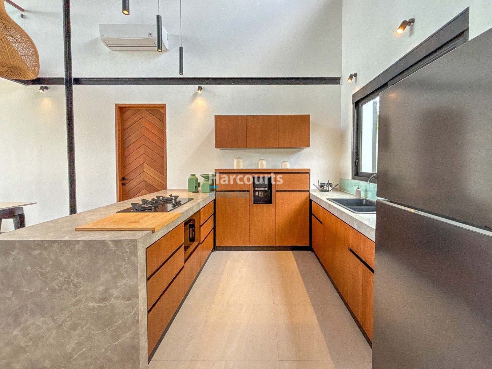 Discover this brand-new villa available for yearly rental in the serene rice fields of Kaba Kaba. Completed in 2025 and offered fully furnished, the 165 m² build houses two bedrooms and two bathrooms with a distinctive mezzanine level that overlooks the open-plan living space—ideal as a home office, media nook or extra guest area—and frames peaceful views across the paddies.