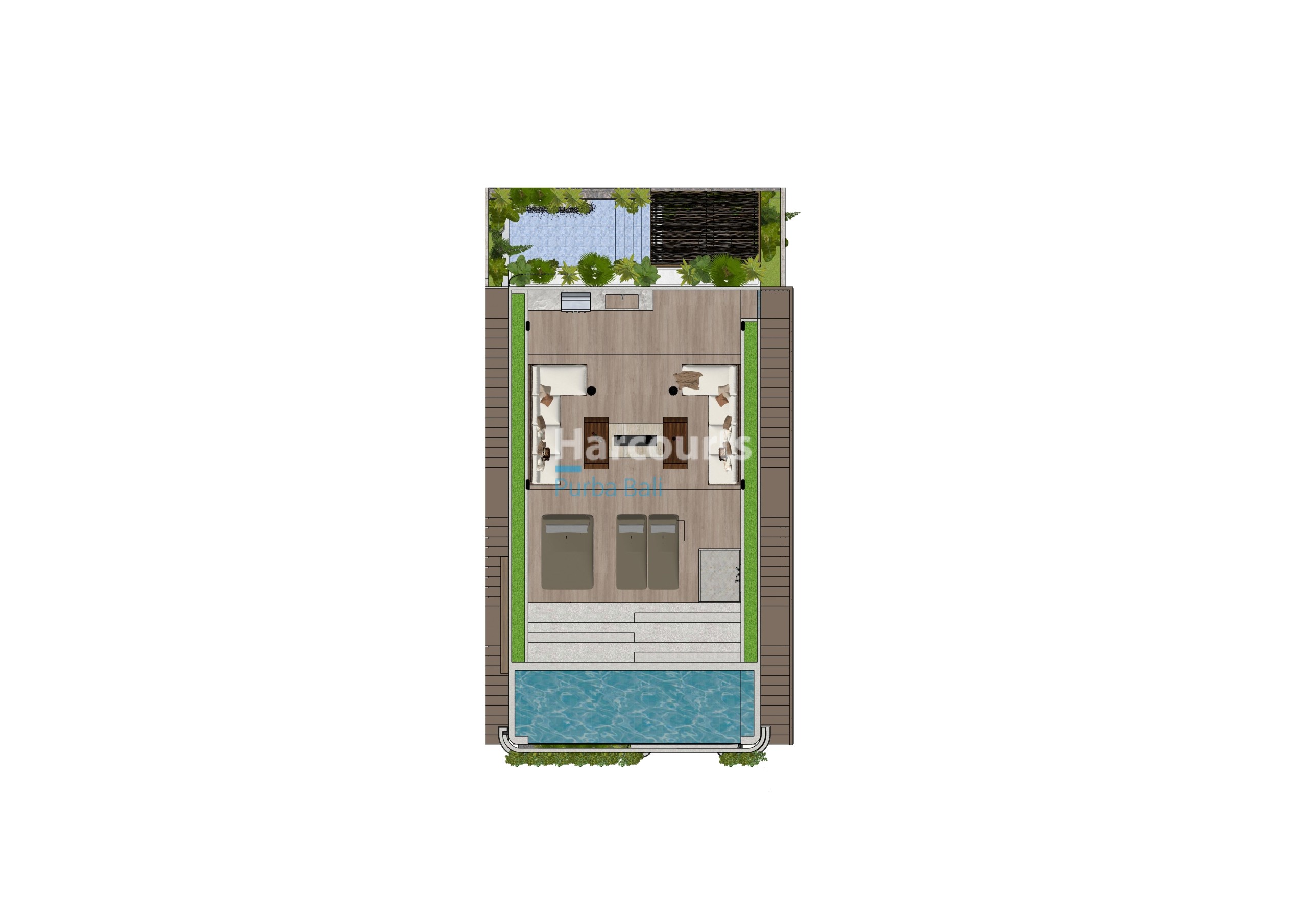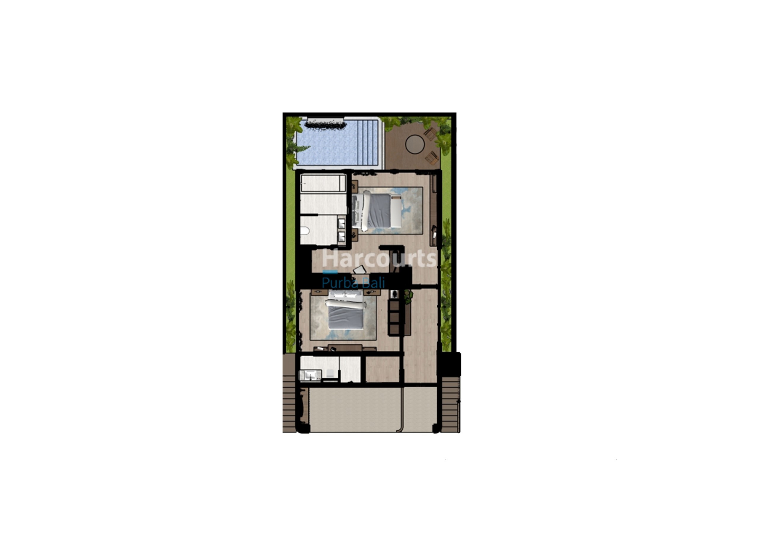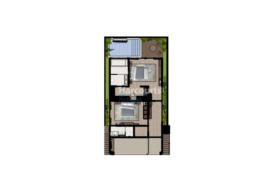 The villa comes fully furnished and ready to enjoy upon completion in 2025. Its FREEHOLD status (Hak Guna Bangunan) ensures long-term ownership, with zoning designated for residential use, making it an excellent option for both personal use and rental income.