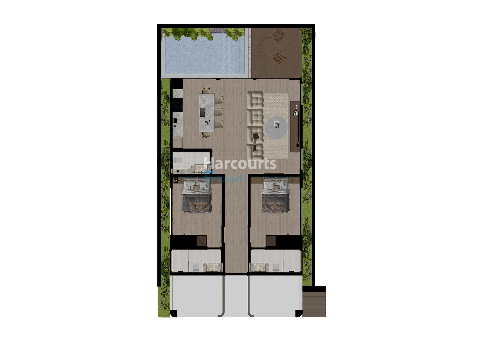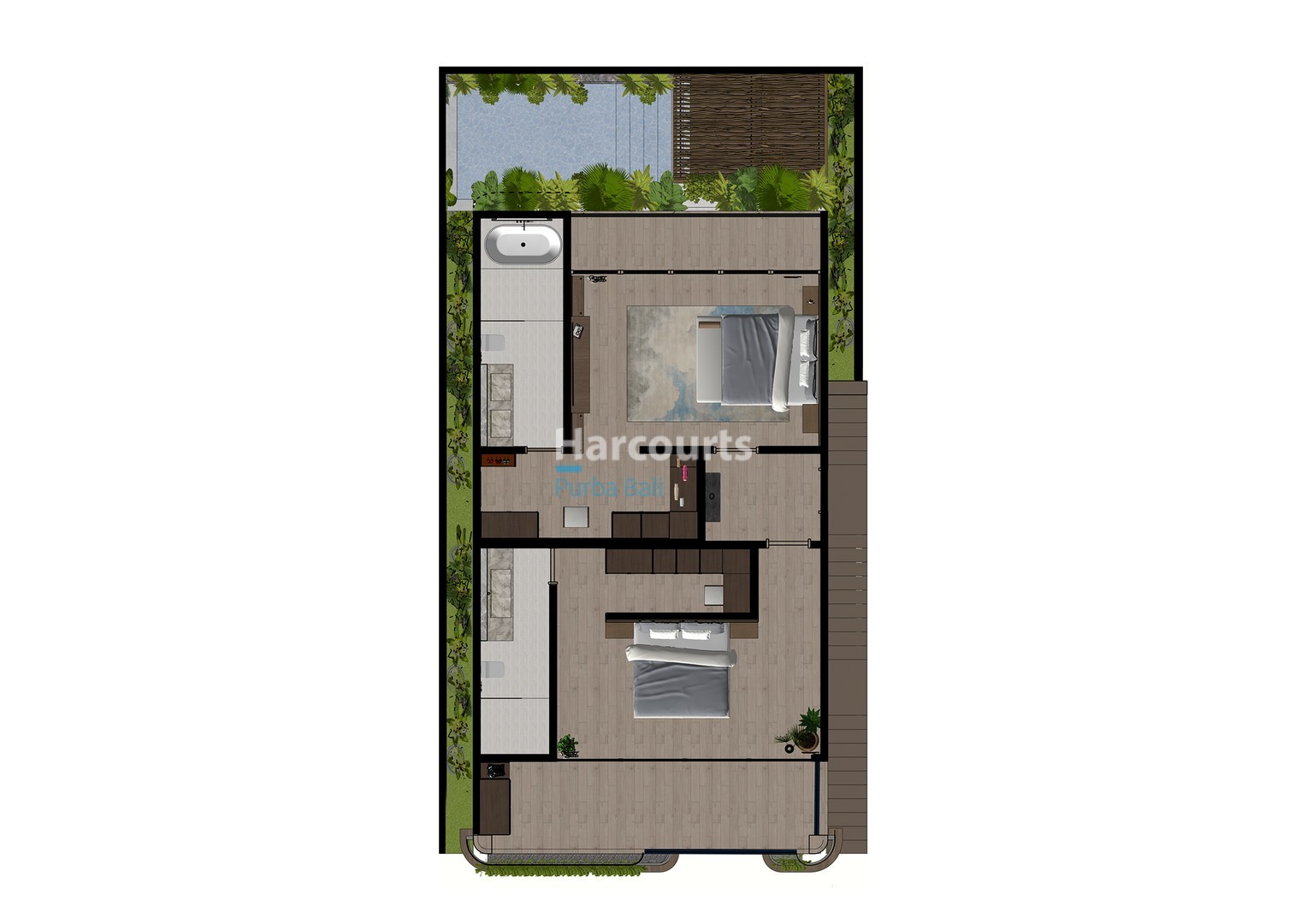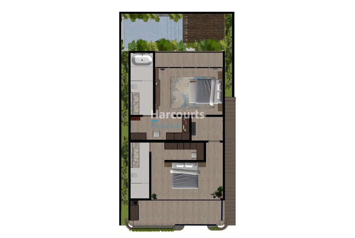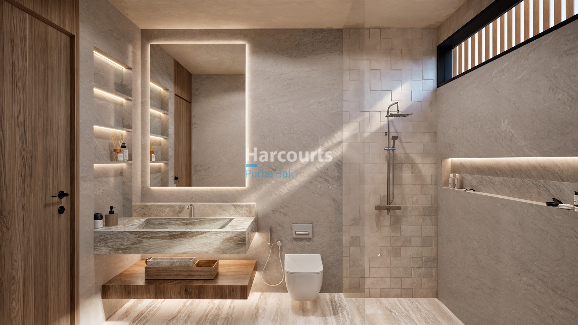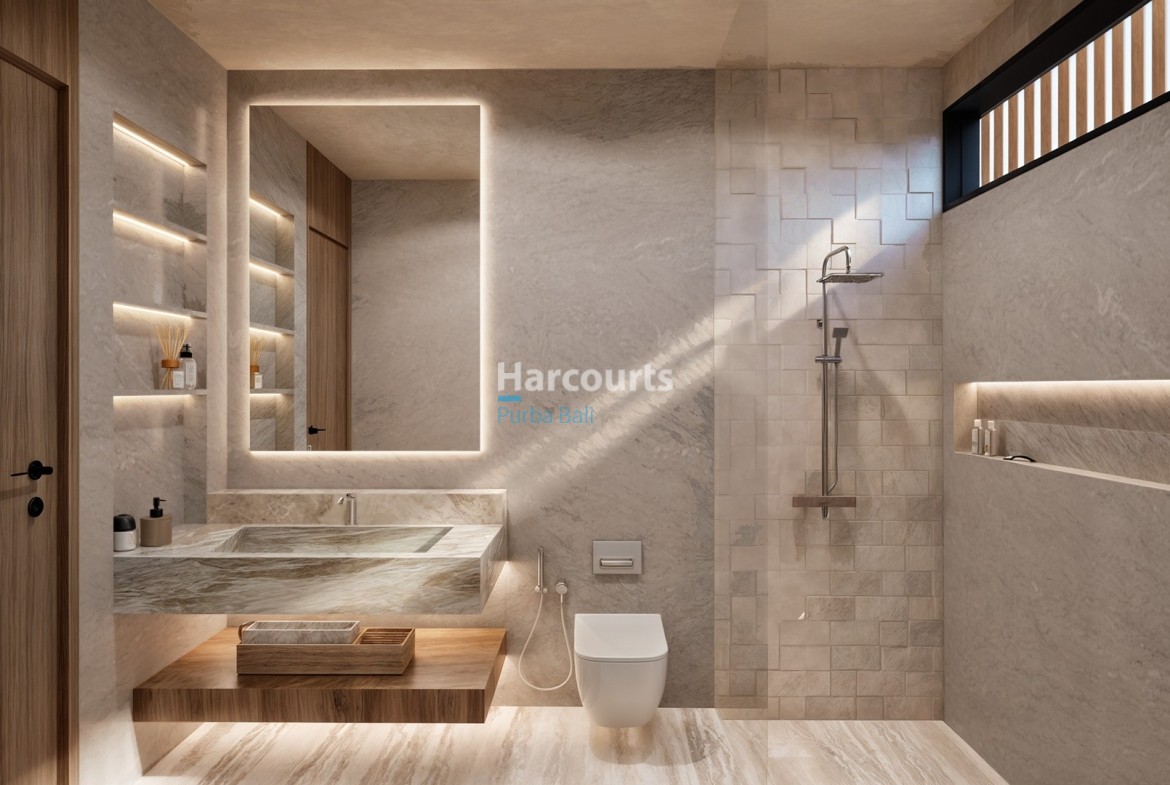 The villa comes fully furnished and ready to enjoy upon completion in 2025. Its FREEHOLD status (Hak Guna Bangunan) ensures long-term ownership, with zoning designated for residential use, making it an excellent option for both personal use and rental income.