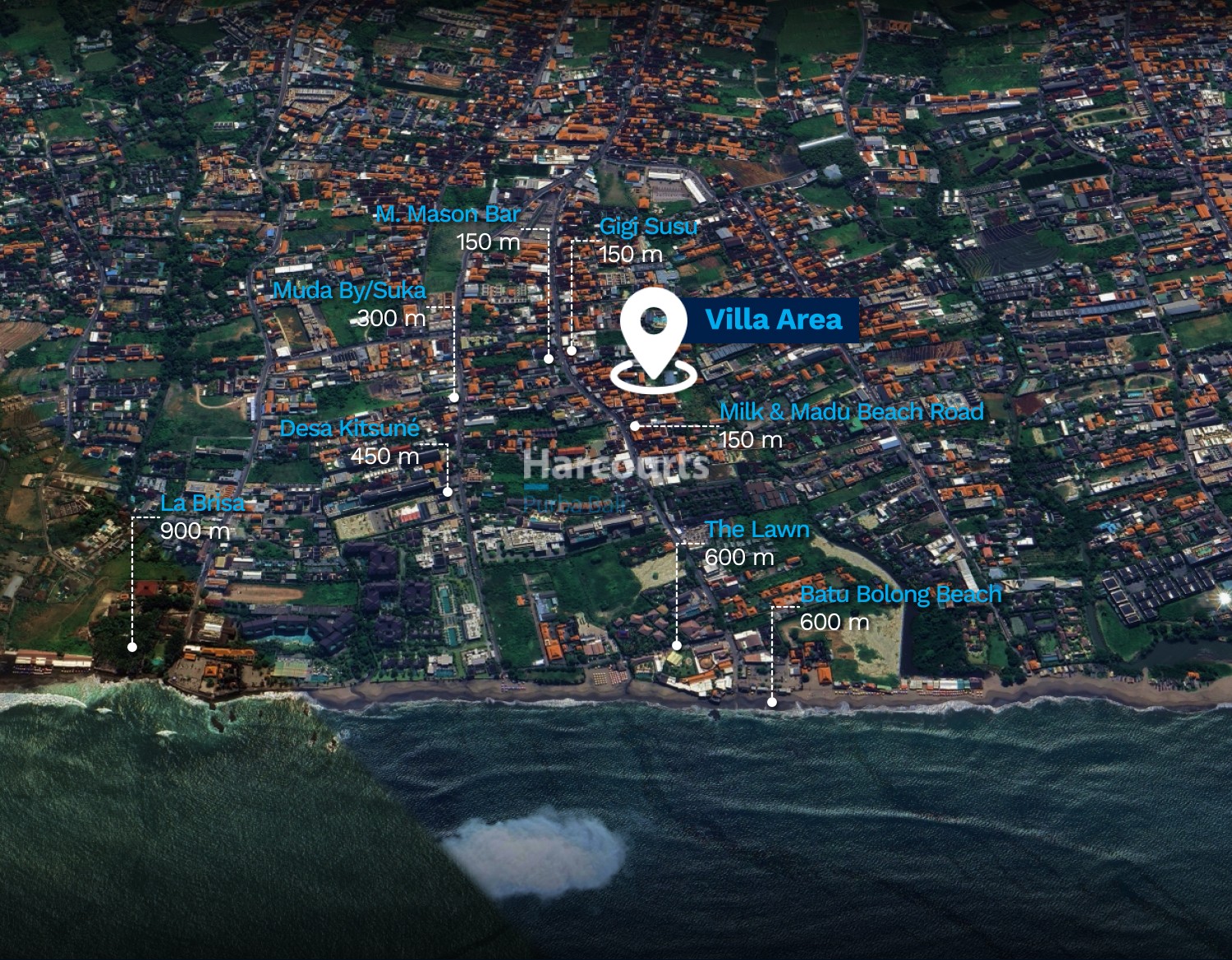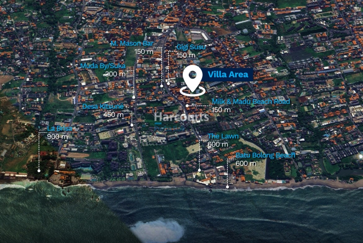 Nearby: M. Mason Bar 150 m, Gigi Susu 150 m, Milk & Madu Beach Road 150 m, Muda By/Suka 300 m, Desa Kitsuné 450 m, The Lawn 600 m, Batu Bolong Beach 600 m, La Brisa 900 m