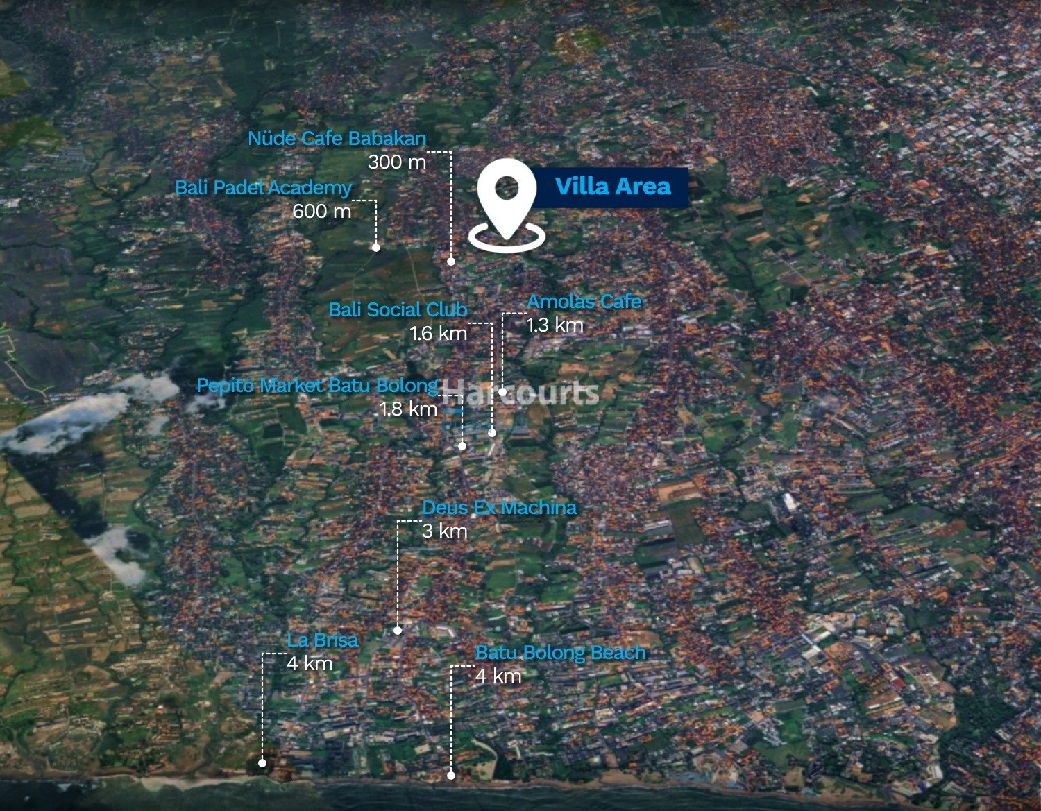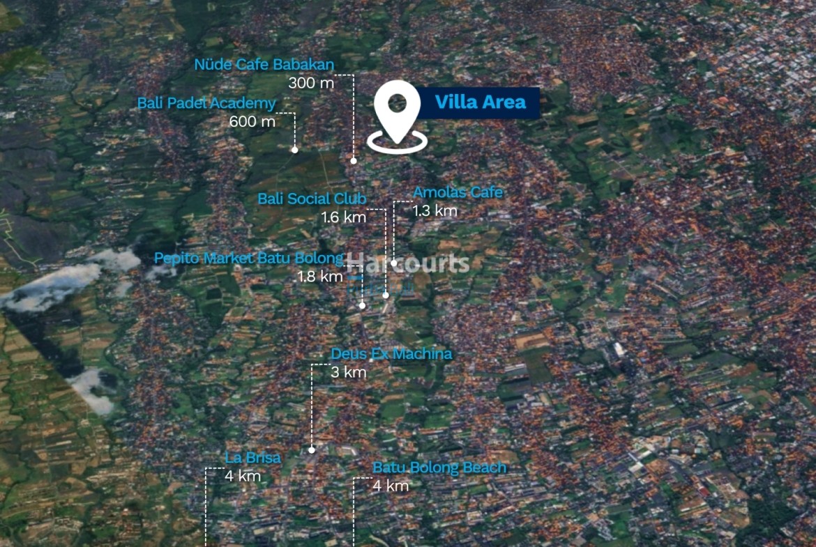 Nearby: Nüde Cafe Babakan 300 m, Bali Padel Academy 600 m, Amolas Cafe 1.3 km, Bali Social Club 1.6 km, Pepito Market Batu Bolong 1.8 km, Deus Ex Machina 3 km, La Brisa 4 km, Batu Bolong Beach 4 km