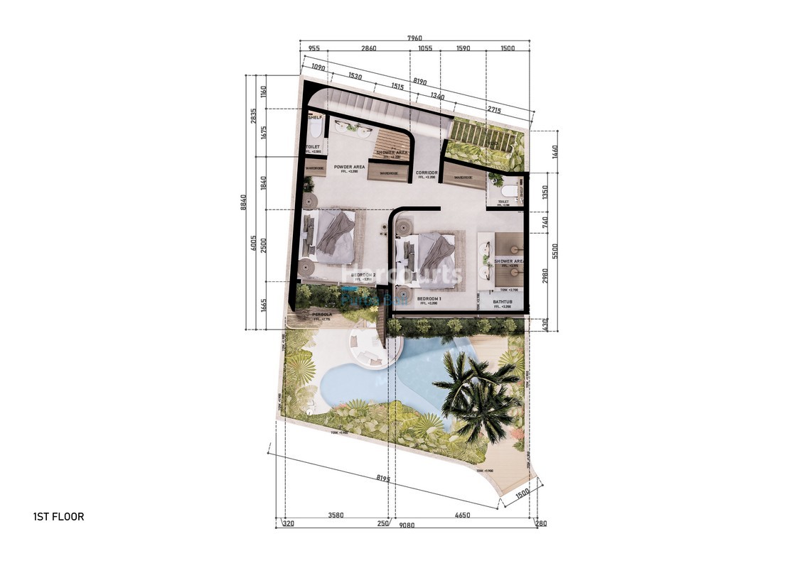 Situated in the desirable hills of Pecatu, this off‑plan modern villa on Leasehold (Hak Sewa) — 25 years remaining plus a 25-year extension option — offers contemporary tropical living with a standout rooftop lounge and jacuzzi framing ocean views. Designed for effortless indoor–outdoor flow, the two-bedroom, two-bathroom residence is due for completion in 2026 and is offered at Rp 3,840,000,000.
