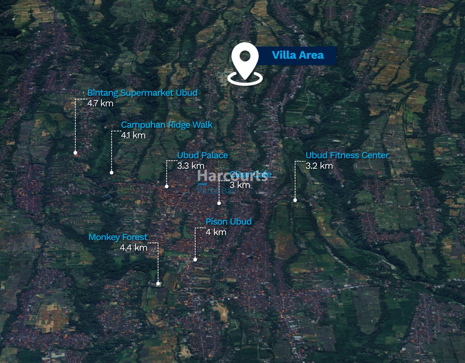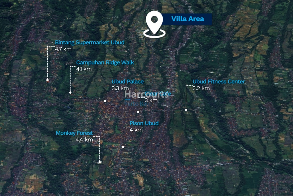 The location places you just 15 minutes from Central Ubud and close to popular cafés, restaurants, wellness resorts, and fitness centers, making daily life convenient while keeping you immersed in nature.