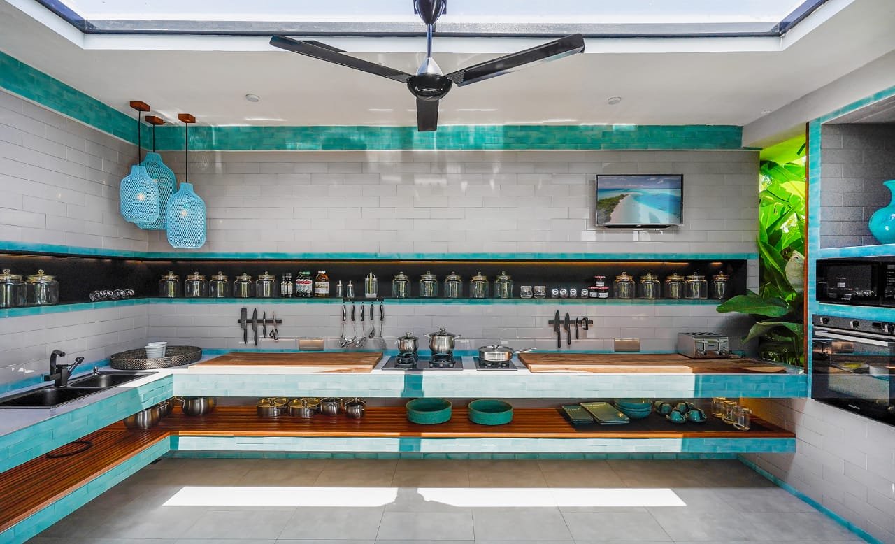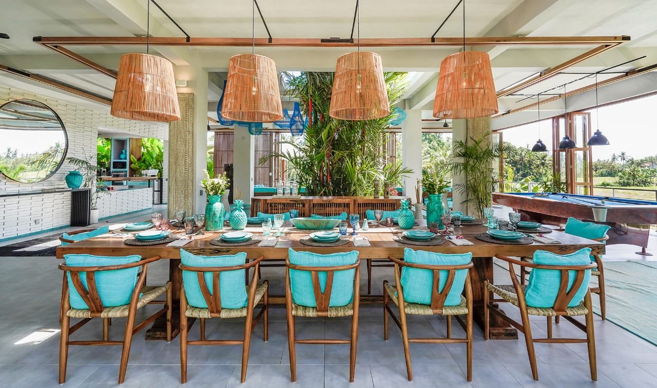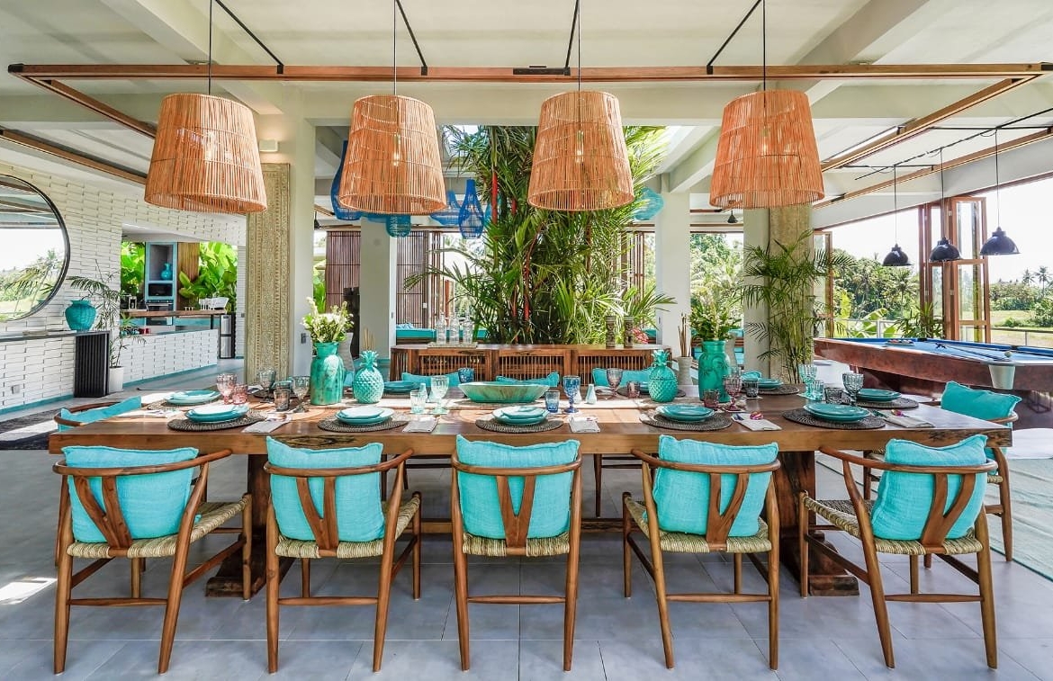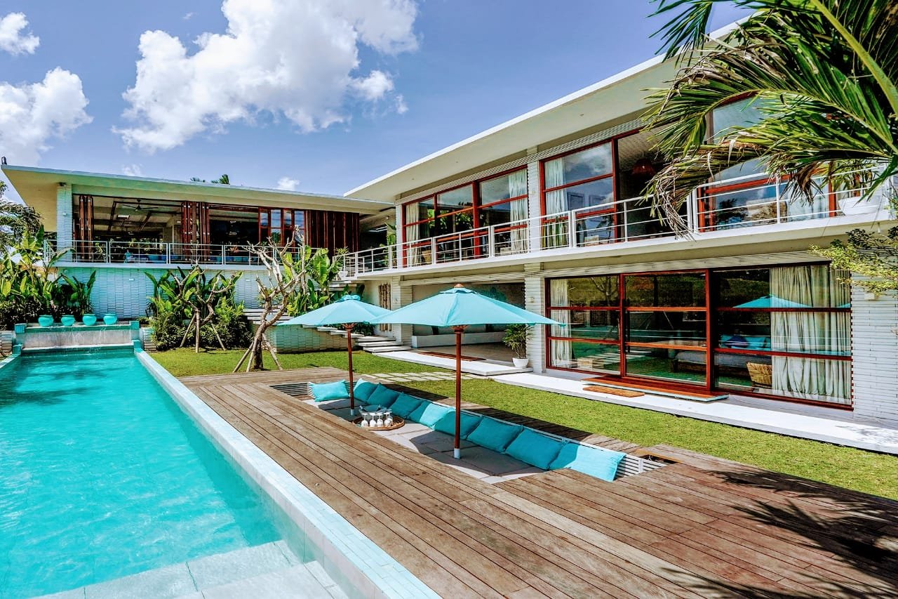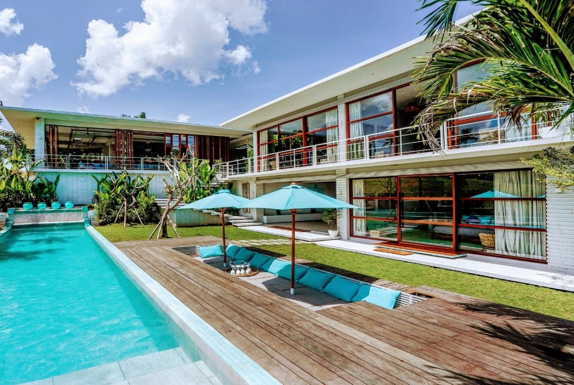 This 5-bedroom, modern-style villa overlooks verdant rice fields and sacred mountains in the peaceful neighbourhood of Kedungu beach, Tabanan Regency.