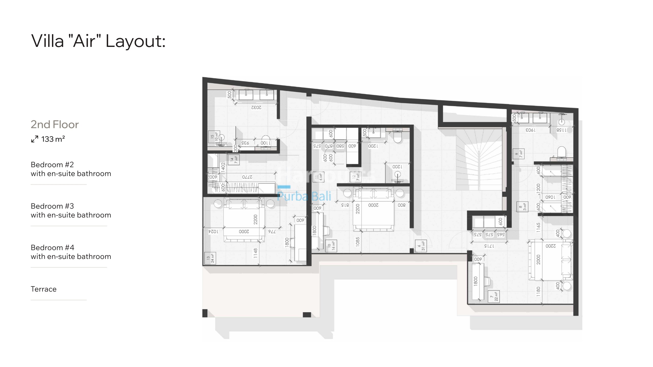 This well-designed villa is part of an exclusive four-villa estate in Labuan Sait, Bingin, offered with a secure 80-year HGB title and set for completion in June 2026. Designed across two levels, the residence delivers 254 m² of living space on a 2.2 are parcel, merging modern coastal architecture with sweeping ocean and mountain views and refined finishes.