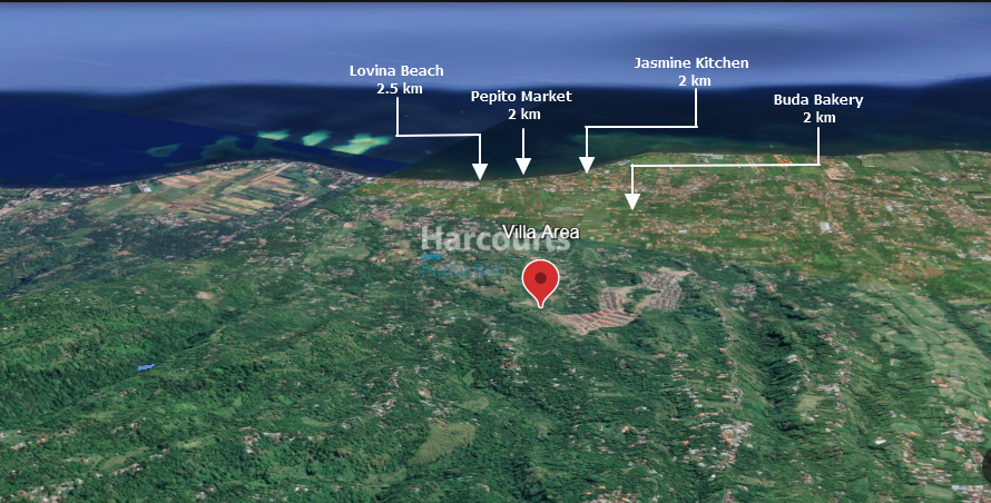 Nearby: Pepito Market 2 km, Spice Beach Club 2 km, Jasmine Kitchen 2 km, Buda Bakery 2 km, Lovina Beach 2.5 km, Lemongrass Resto 3.5 km