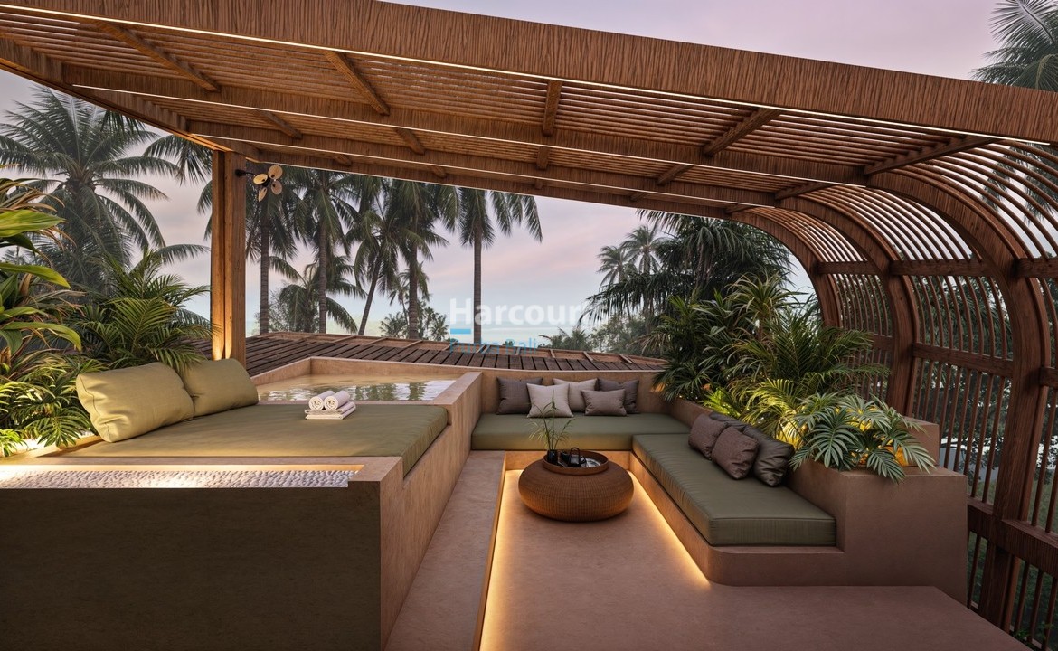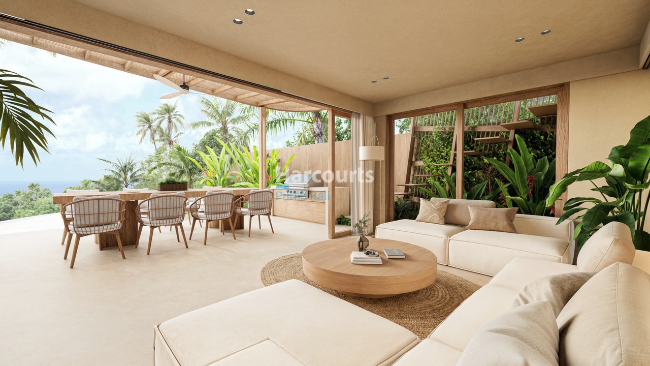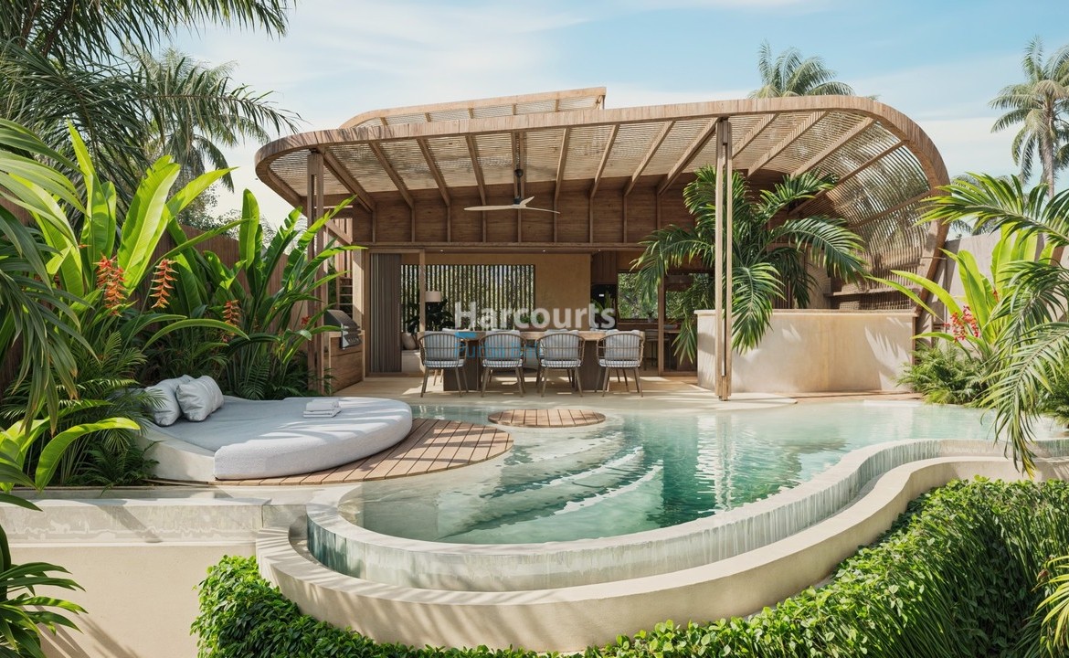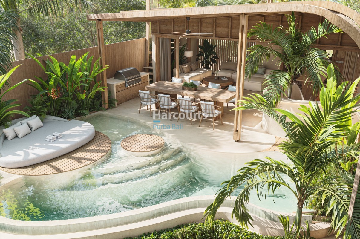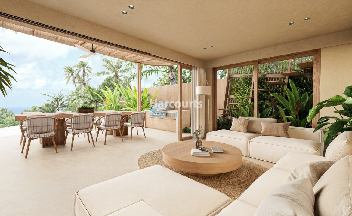 Situated in the desirable hillside of Pecatu, this brand-new off‑plan villa on Leasehold (Hak Sewa) — 25 years remaining, presents a refined three-bedroom, four-bathroom residence with sweeping ocean views and a rooftop pavilion crowned by a private jacuzzi. Designed for completion in 2026 and offered fully furnished, the intelligent 147 m² build across two main levels plus a rooftop delivers contemporary living with immediate rental appeal.