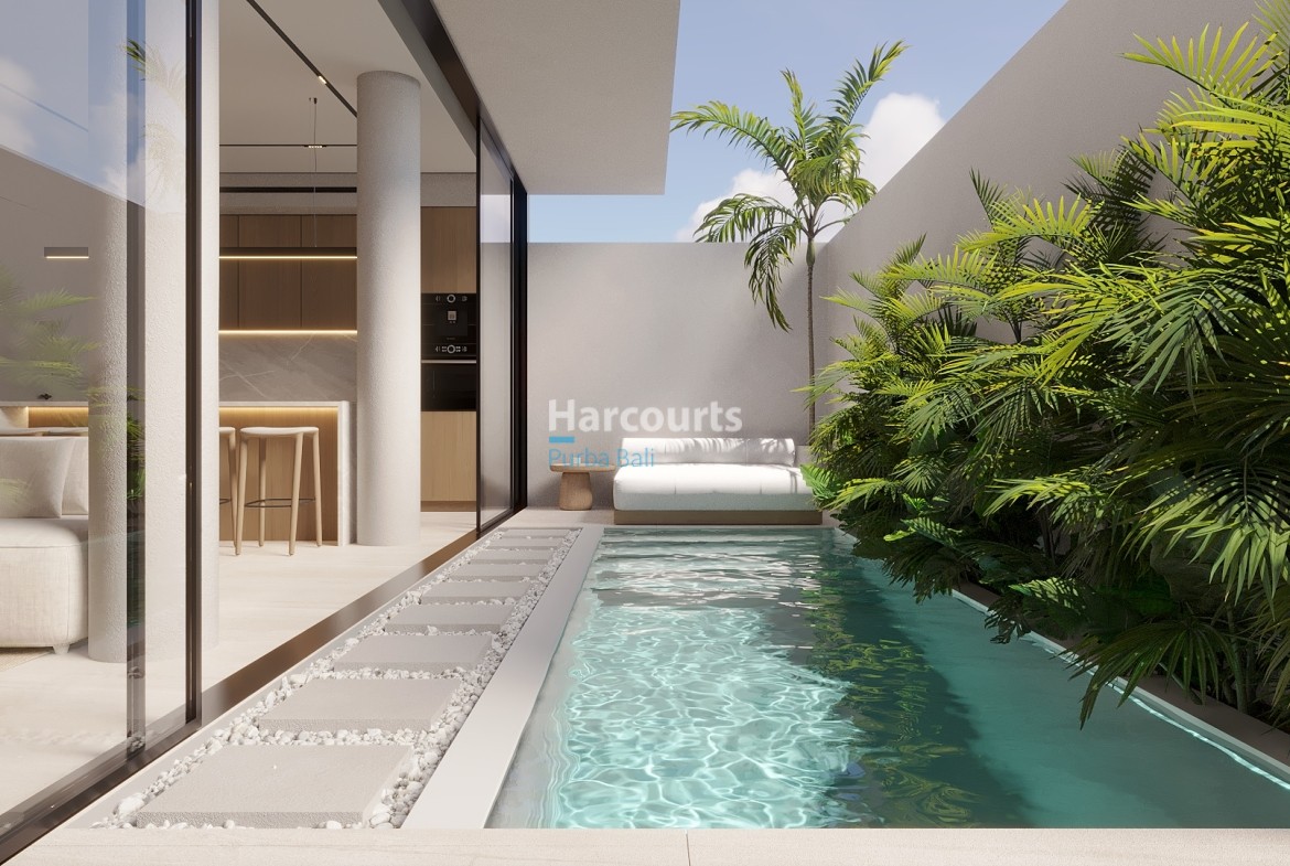 Set in desirable Pererenan, this brand-new two-bedroom villa on Leasehold (Hak Sewa) — 40 years remaining — offers a fully turnkey lifestyle with completion scheduled for 2026 and a guaranteed option to extend. Designed with sustainable living in mind, the property includes a 2.6 kWp solar energy system featuring 6 high-efficiency panels, providing long-term energy savings and a strong investment return.