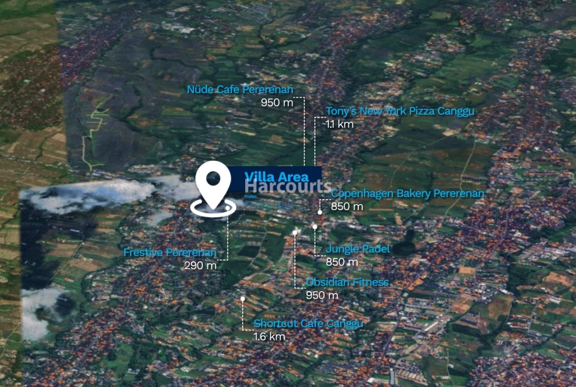 Outside, the 1.34 are (~134 m²) plot is designed as a private sanctuary: a poolside terrace set within perimeter walls, established greenery visible from the living spaces, and dedicated motorbike parking for convenience. The residential zoning and tranquil street setting deliver a calm home base while keeping the cafes, wellness studios and surf breaks of Pererenan easily accessible.