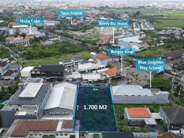Despite its long rectangular shape (approximately 13.5 x 104 meters), this flat land presents endless possibilities. The tourism zoning allows for versatile development, such as a chic boutique hotel, a small resort, or even multiple high-end villa units. Taking advantage of the long layout, a stylish villa complex with private pools and garden courtyards could offer an intimate, serene escape just steps from the action, perfect for travelers looking to blend relaxation with the buzz of Seminyak.
