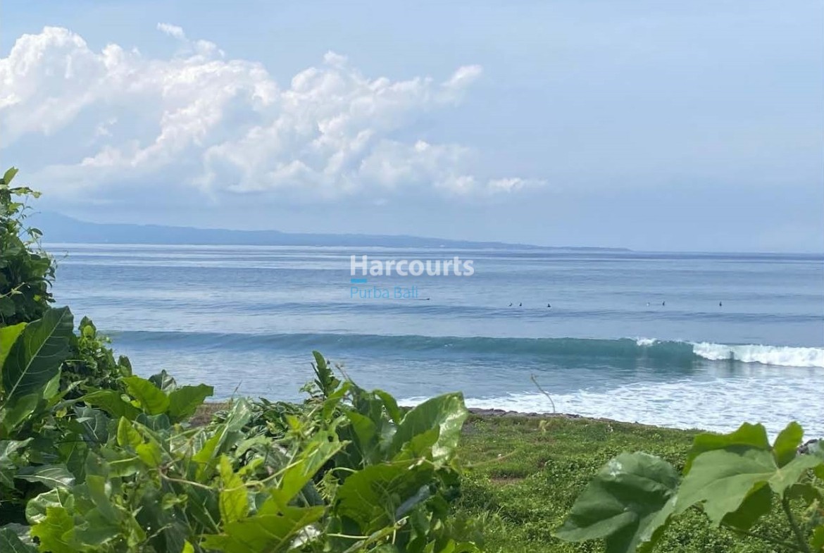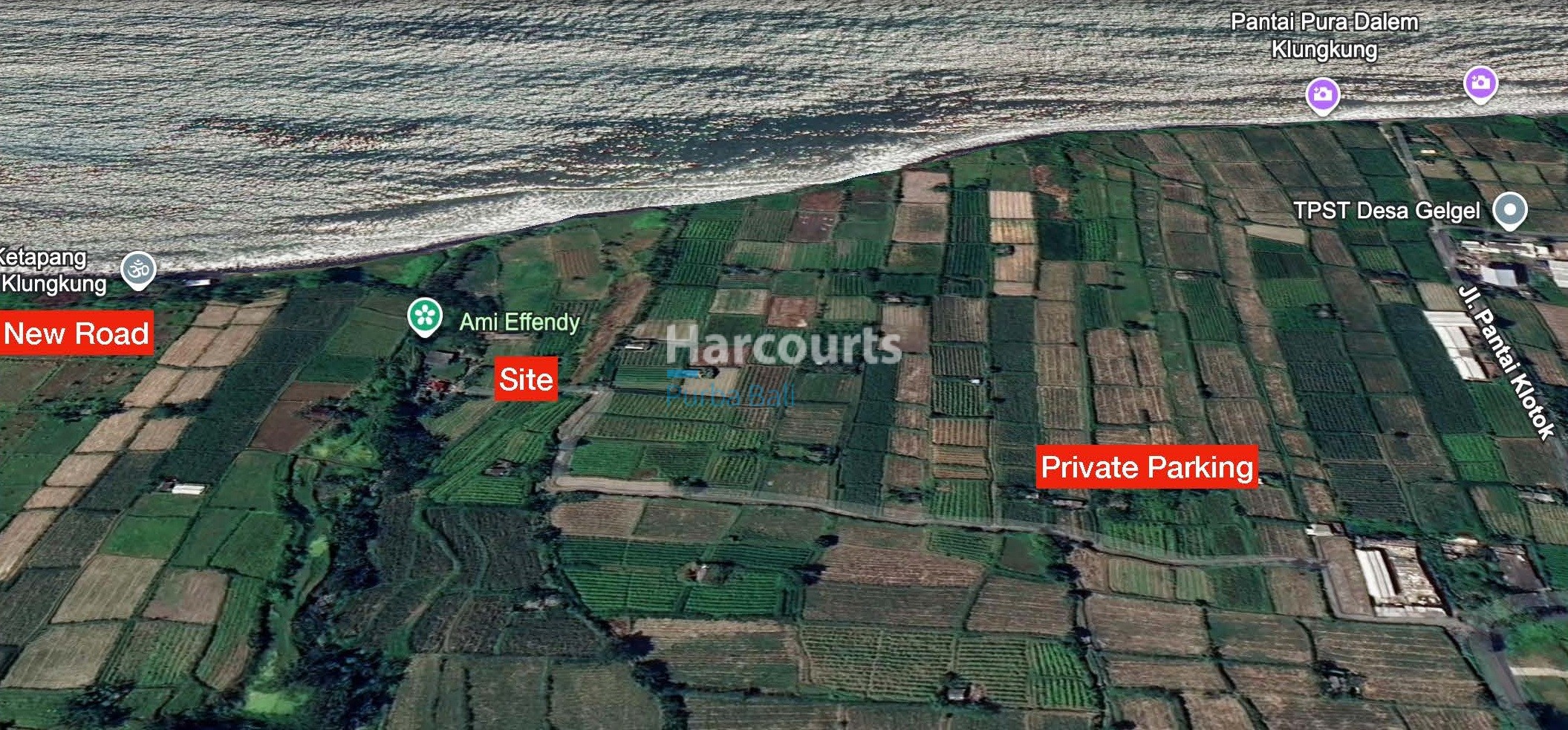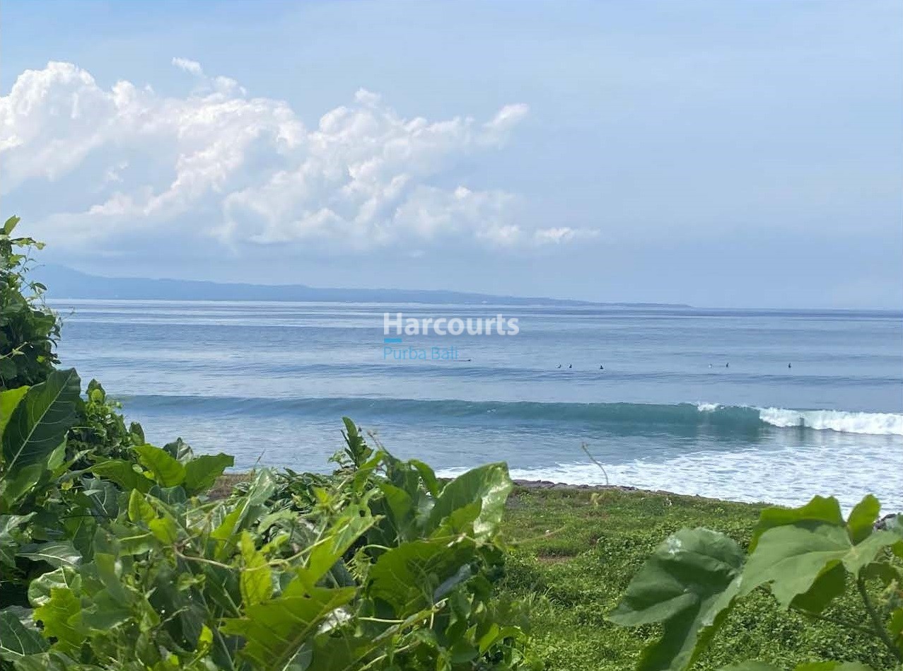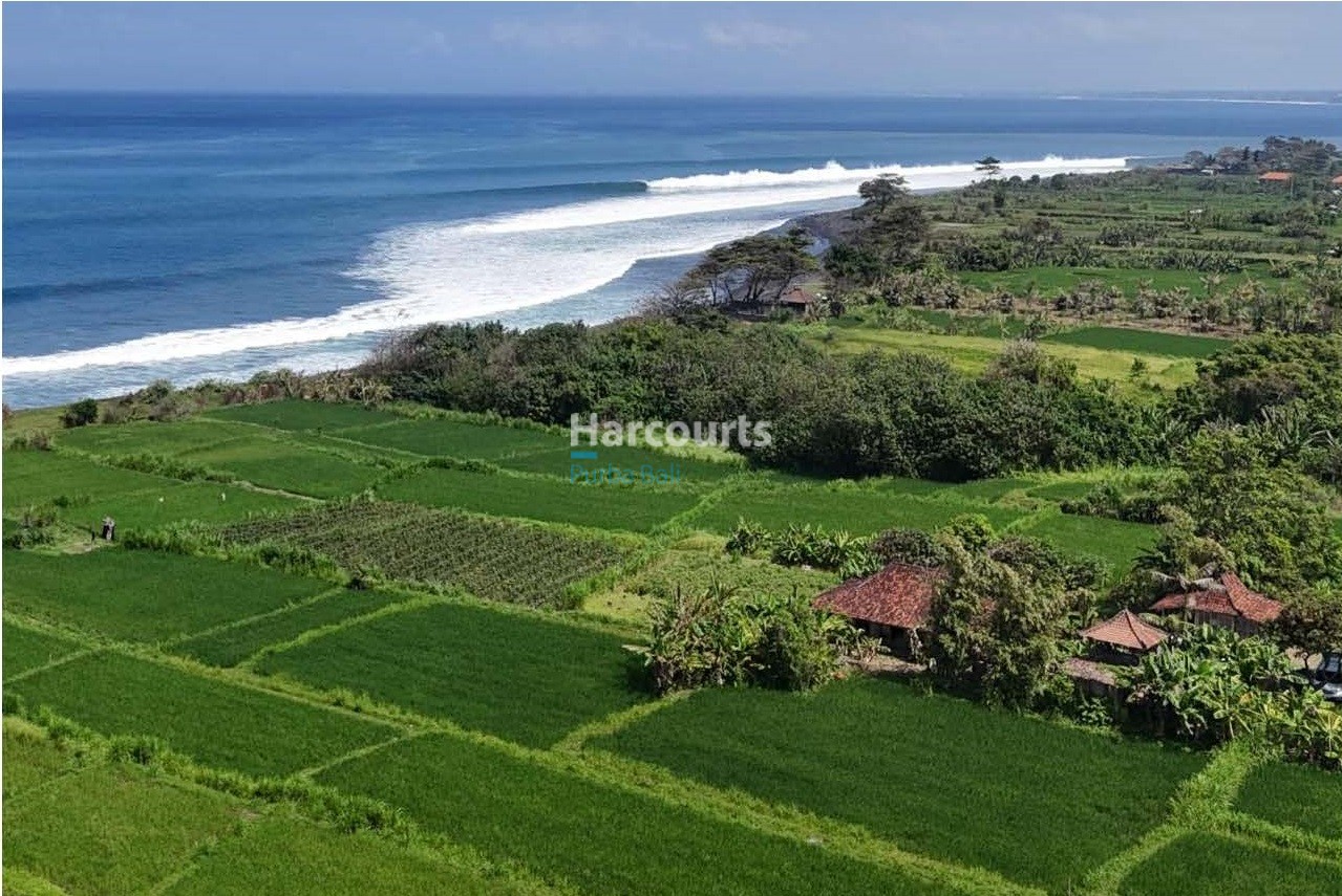 A surfers paradise with world class waves directly in front of the land. With a peak elevation of 6m the site looks directly over the ocean, a winding river and ensures the best views of surf, neighbouring islands and a backdrop of volcanos. Tourism Zoned certificate with greenbelt neighbouring blocks to ensure endless rice field and ocean views. To maintain privacy and serenity of the sites entrance through the rice fields and river, a 200 m golf buggy path connects to a 400 m2 private car park. Local government has also specified a 5 m wide asphalt road will soon be installed on the beach side, allowing direct car access for residence.