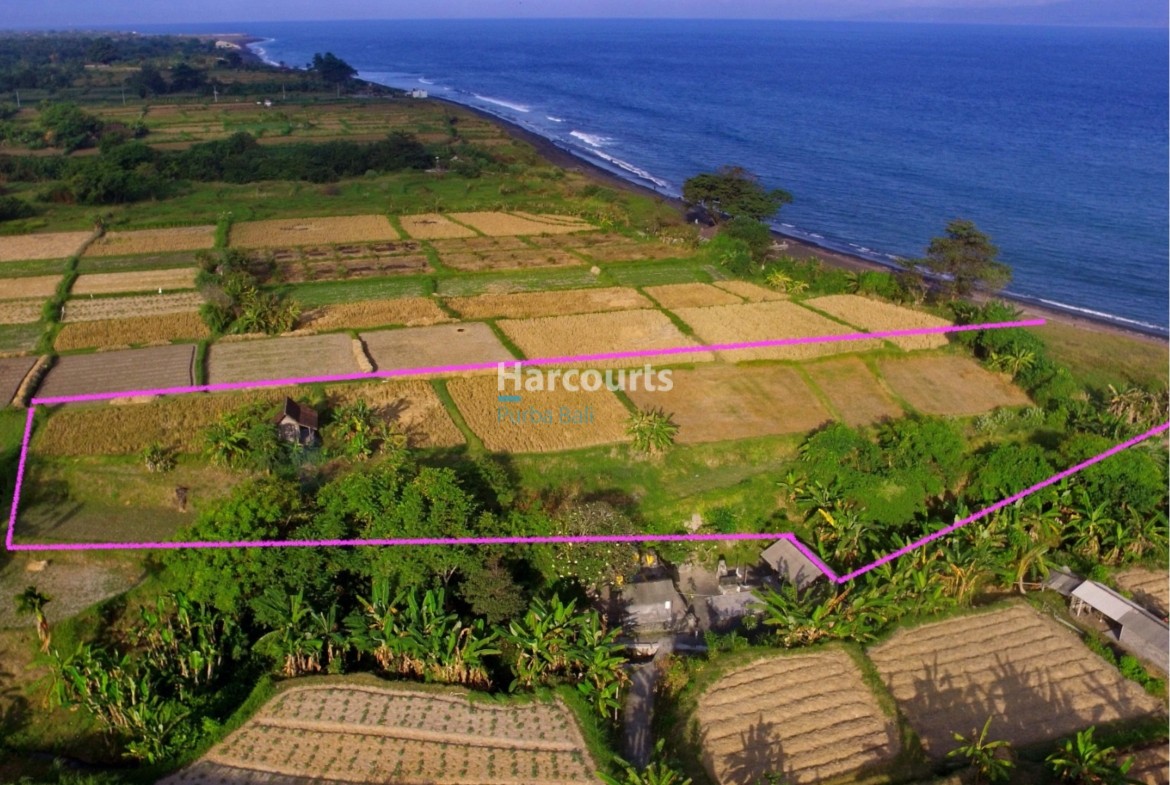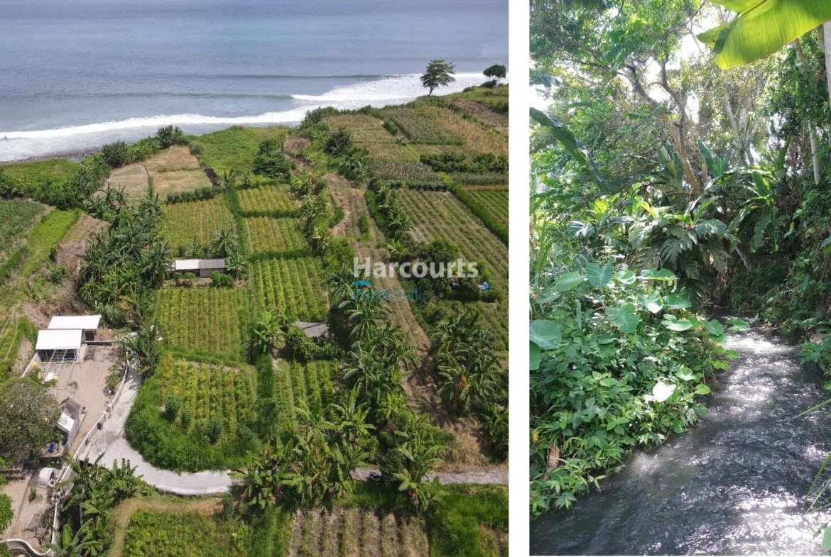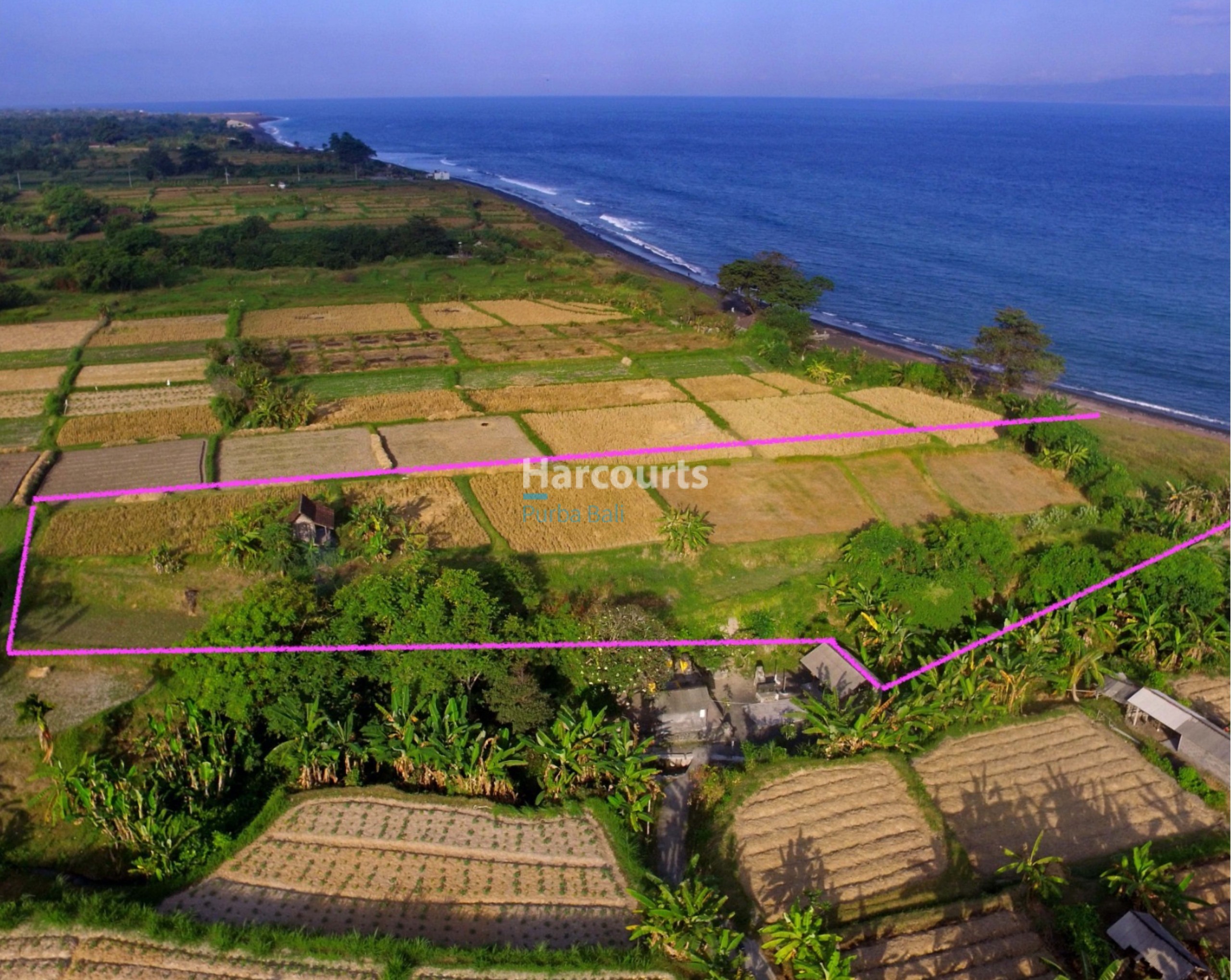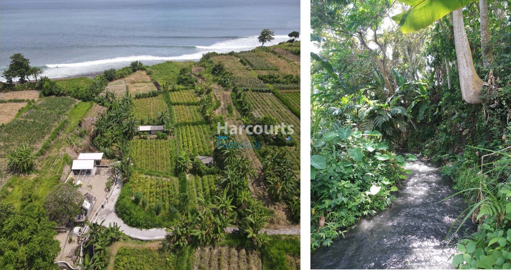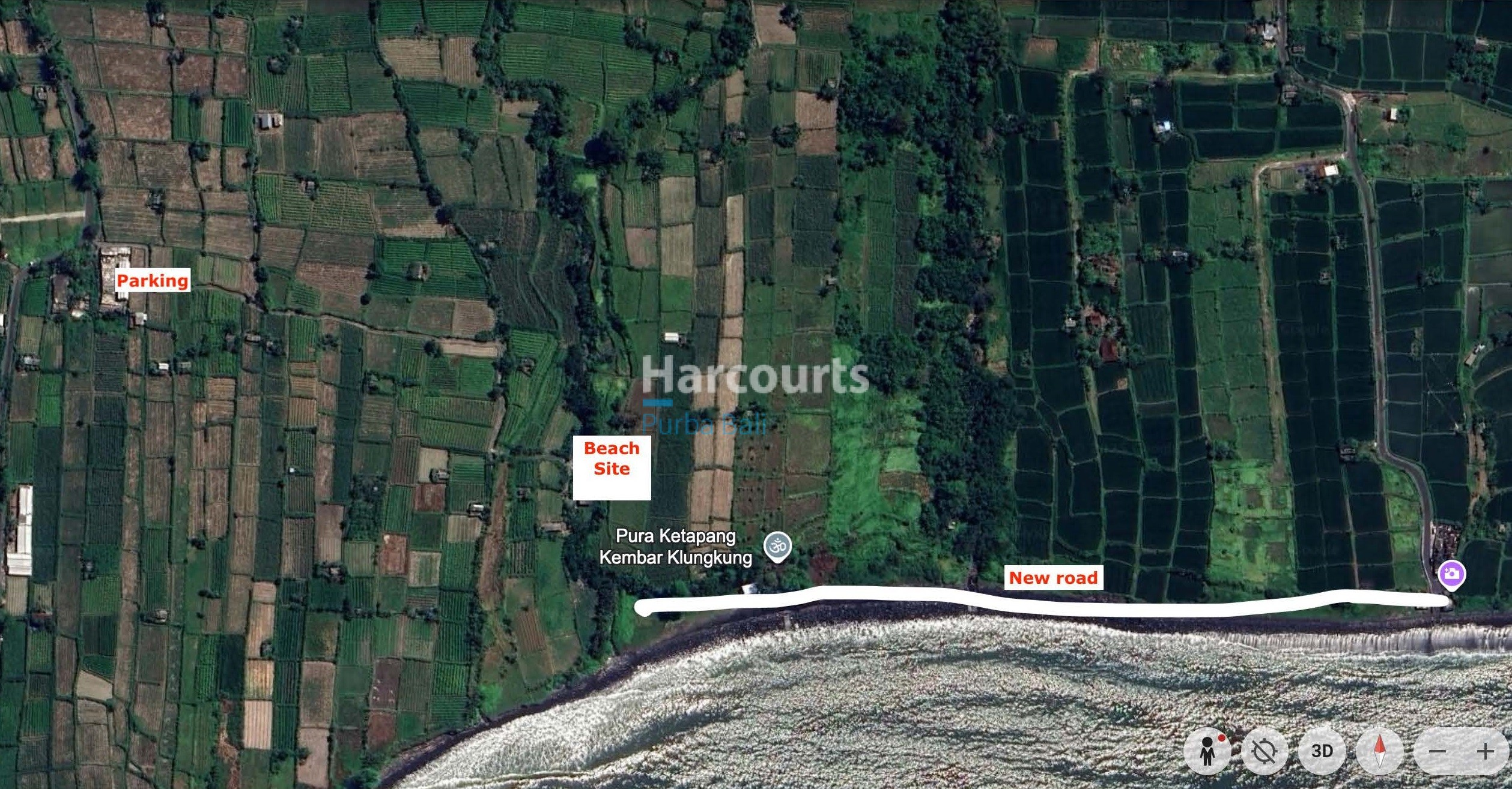 A surfers paradise with world class waves directly in front of the land. With a peak elevation of 6m the site looks directly over the ocean, a winding river and ensures the best views of surf, neighbouring islands and a backdrop of volcanos. Tourism Zoned certificate with greenbelt neighbouring blocks to ensure endless rice field and ocean views. To maintain privacy and serenity of the sites entrance through the rice fields and river, a 200 m golf buggy path connects to a 400 m2 private car park. Local government has also specified a 5 m wide asphalt road will soon be installed on the beach side, allowing direct car access for residence.