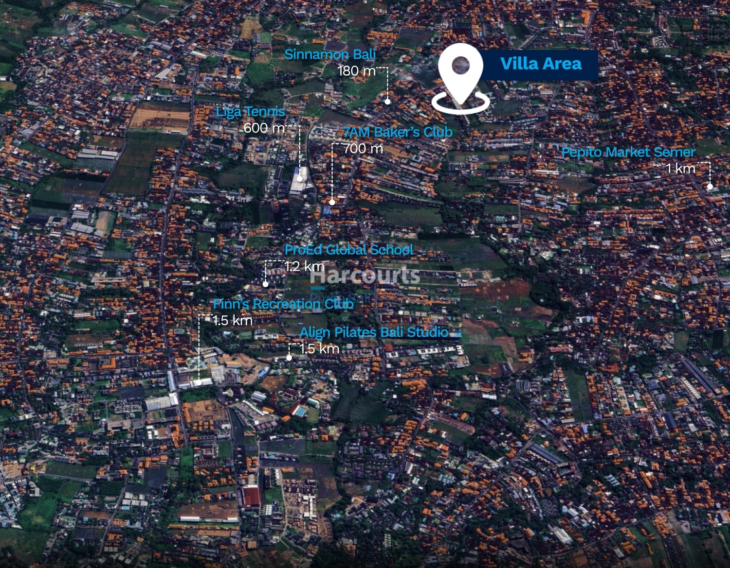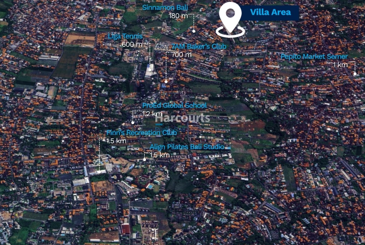 Nearby: Sinnamon Bali 180 m, Liga Tennis 600 m, 7AM Bakers 700 m, Pepito Market Semer 1 km, ProEd Global School 1.2 km, Align Pilates Studio 1.5 km, Finns Recreation Club 1.5 km