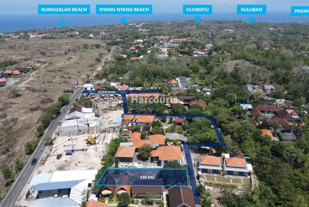 Located in sought-after Uluwatu on the Bukit Peninsula, this Leasehold (Hak Sewa) title with 25 years remaining presents a rare commercial opportunity on a level, regular 3.3 are (≈330 m²) parcel. The site’s clear boundaries, level terrain and convenient road access make it an exceptionally straightforward canvas for a café, boutique, villa-with-commercial component or other service-oriented development.