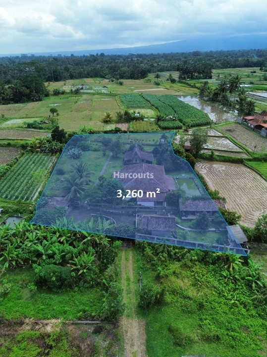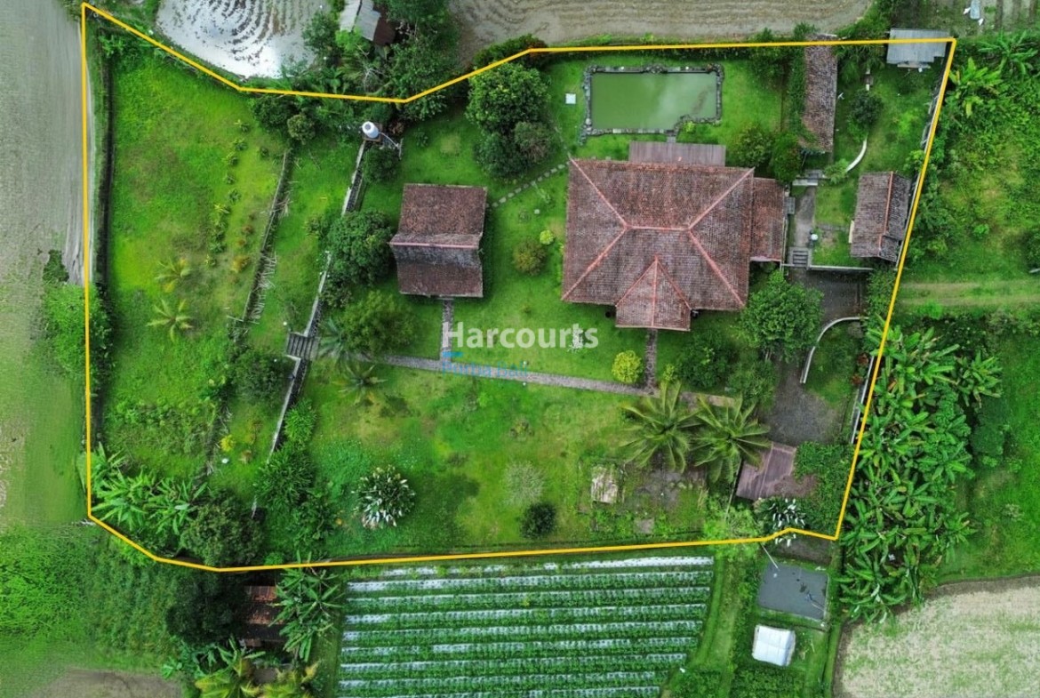 Set across 3,260 sqm of FREEHOLD land, this stunning property in Baturiti, Tabanan offers the perfect balance of privacy, natural beauty, and investment potential. Surrounded almost 360 degrees by expansive ricefields, the estate provides an unmatched sense of space and tranquility while remaining highly accessible via a 6-meter-wide main road, followed by a 4-meter gravel access leading directly to the property.