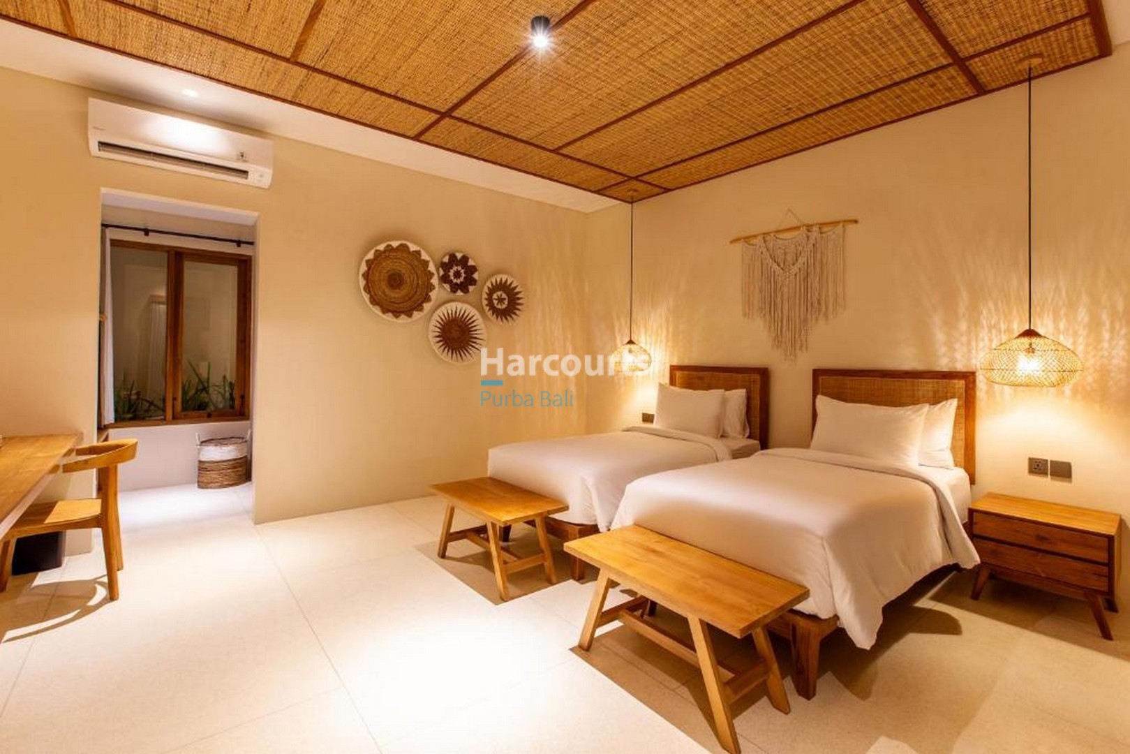 The hotel has been fully renovated and is ready for business. With a strong track record and occupancy consistently above 85%, the property currently generates between IDR 400–500 million in monthly revenue. The layout includes 10 guest rooms, a large open-air lounge and swimming pool, and a two-storey structure with flexible potential—perfect for converting into a café, co-working space, or wellness studio. A shopfront can also be added to further capitalize on foot traffic from the surrounding area.