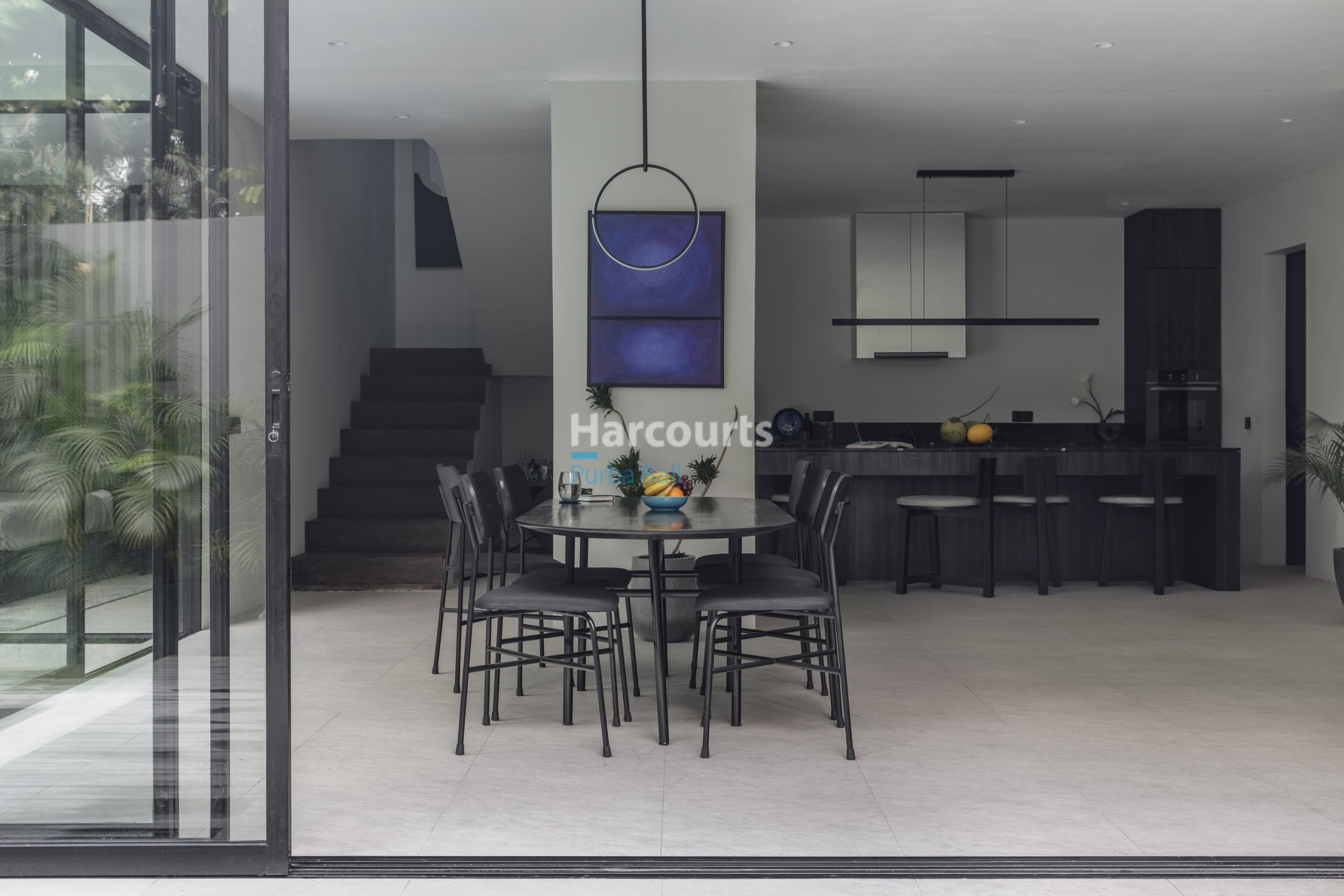 This FREEHOLD property spans 274 sqm of land with a 228 sqm built across two floors. Designed in collaboration with a Russian interior designer, the home reflects an intentional, contemporary aesthetic: matte black accents, clean structural lines, and a soft monochrome palette contrast beautifully with the natural textures and open layout.