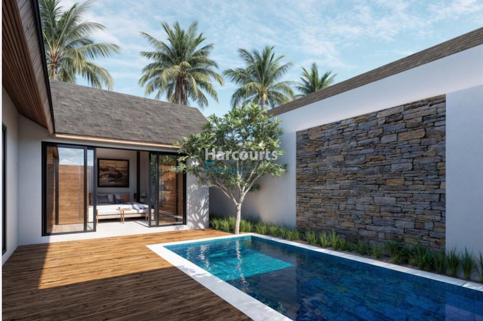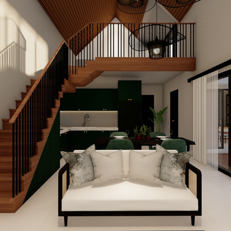 The contemporary style villa is offered as a LEASEHOLD of 23 years with extension options for a further 20 years and will be completed in 2024. It has 3 bedrooms and 2 bathrooms and sits on 230 sqm of land with a floor area of 153 sqm including a mezzanine. The property features an enclosed living/dining area that opens up with sliding doors to the 5m x 1.5m swimming pool. It also includes a modern kitchen and a carport. This property comes partially furnished (built in furniture only)