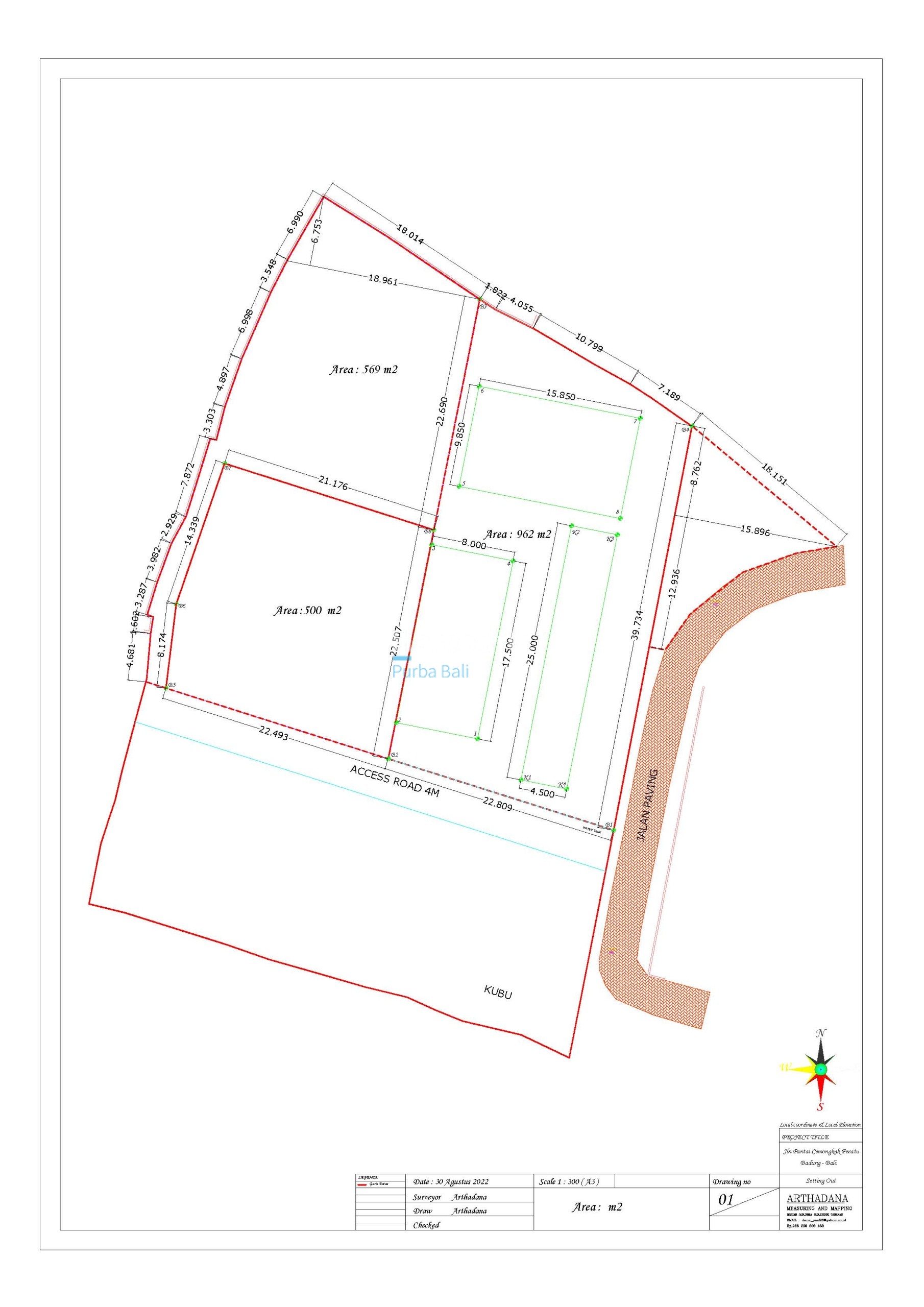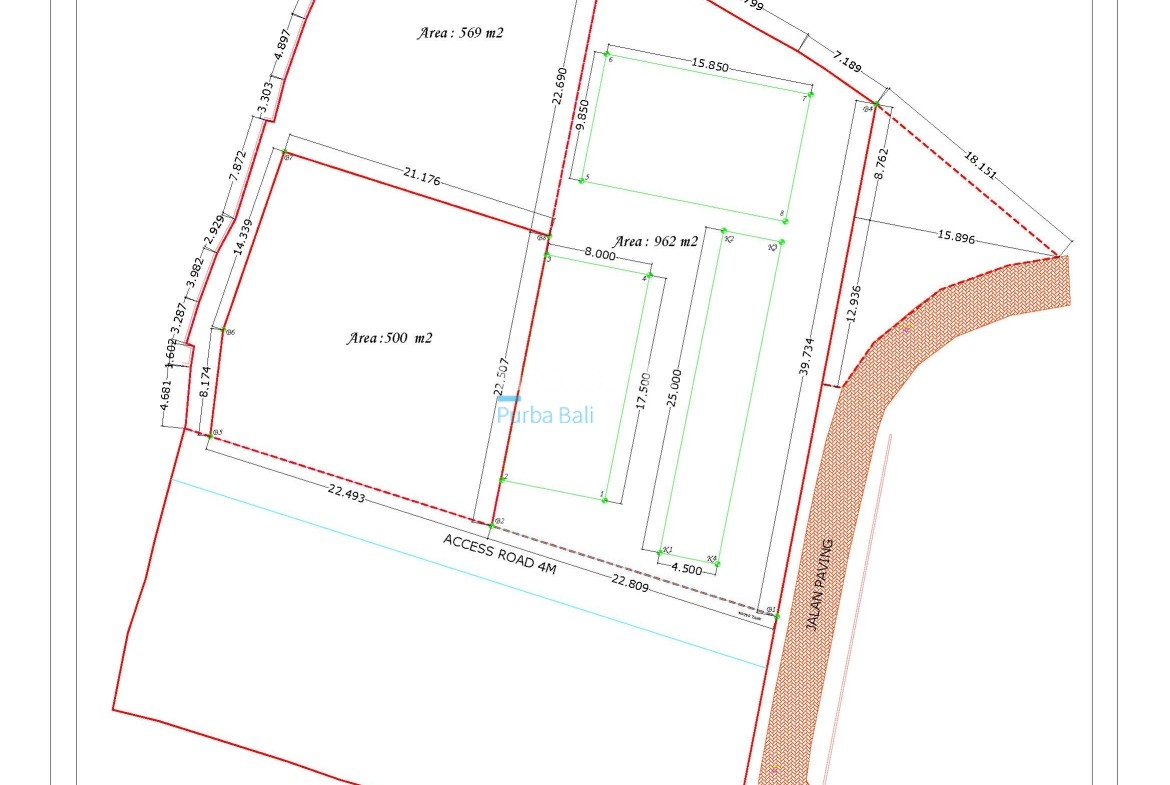The land’s rectangular shape and flat contour make for an easy and efficient build. The site is already equipped with electricity and water, with a 4-meter-wide access road ensuring smooth connectivity. Nestled among luxury villas, this plot guarantees privacy while remaining close to Bingin’s lively social and dining scene.