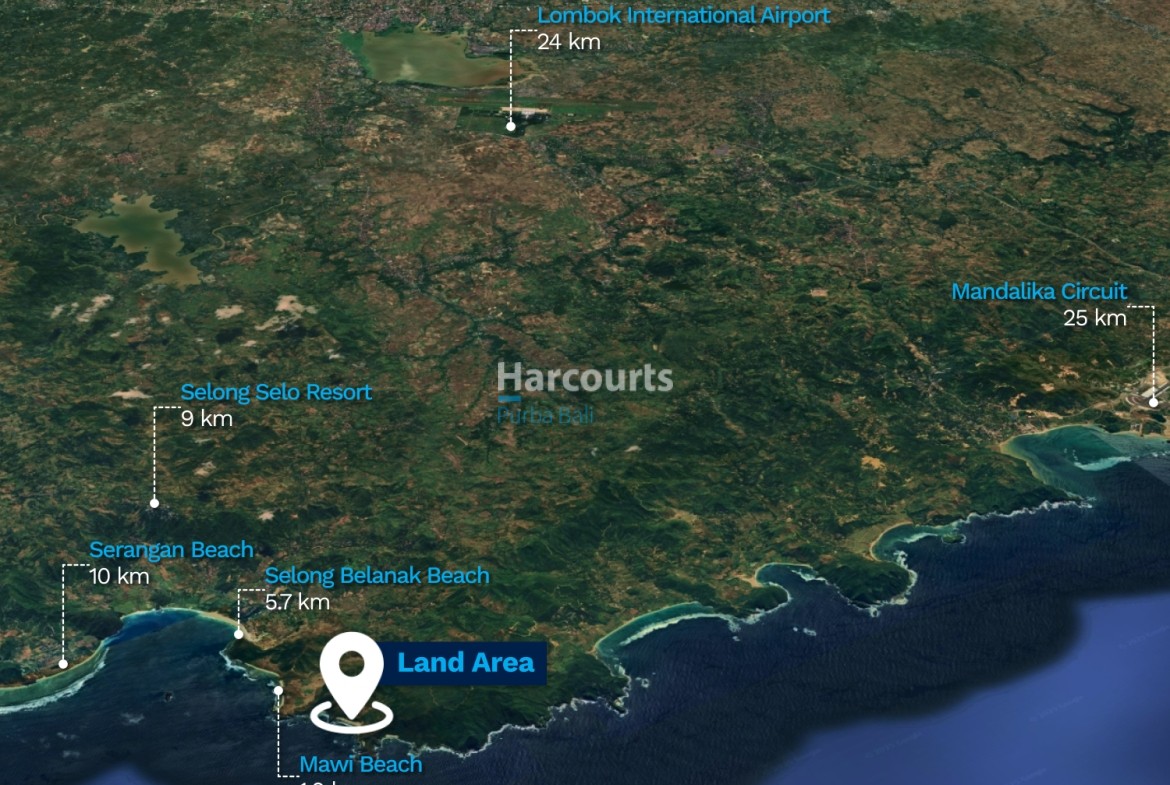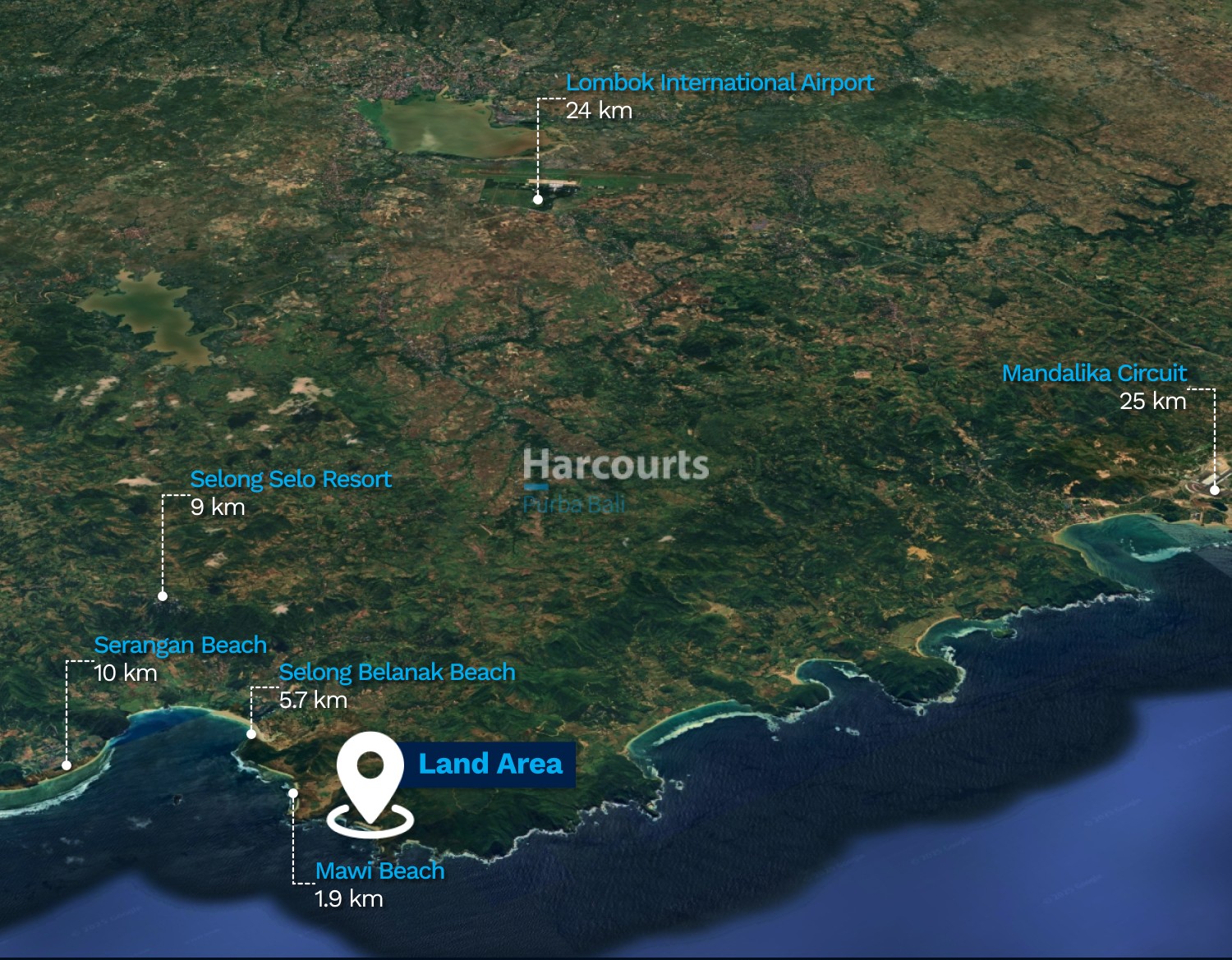 Positioned just south of Selong Belanak and a short drive from renowned surf at Mawi Beach, the property is exceptionally well connected — Lombok International Airport is approximately 25 minutes away. Zoned ‘Pariwisata’ (Tourism) and serviced by an existing access road, the site is generally suitable for commercial tourism uses from a five-star resort or residential villa complex to an exclusive private estate. This is a strategic opportunity in one of Southeast Asia’s most promising luxury corridors.