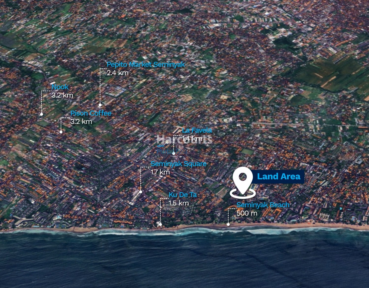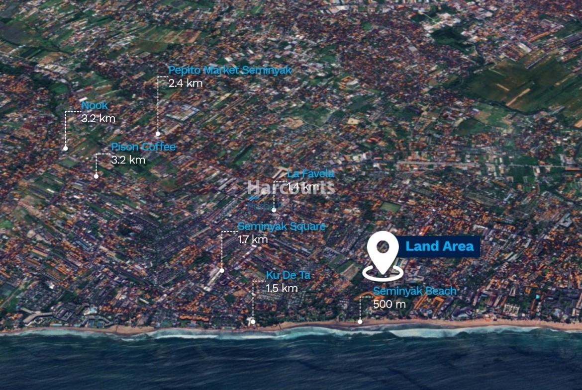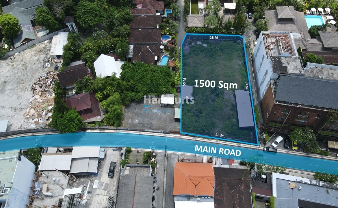 Freehold (Hak Milik) development land in the heart of Seminyak, offered as a rare 15 are (1,502 m²) level parcel with a clear rectangular footprint—approximately 28 m by 55 m—ideal for a luxury villa compound, boutique resort or private estate. Positioned moments from Jalan Dyanapura, the site combines a generous build platform with excellent road access for construction and guest arrival.