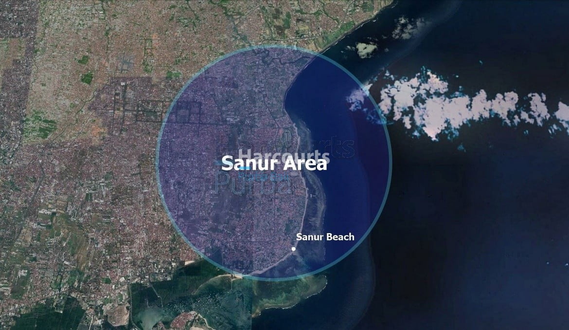 Nearby: Sanur Beach 500 m, Batu Jimbar Café 500 m, Massimo Italian Restaurant 500 m, Bali Mandara Hospital 1.5 km, Grand Lucky Supermarket 2.3 km, Bali International School 2.3 km, Bali International Hospital 2.5 km, Samur Harbour 3.2 km.
