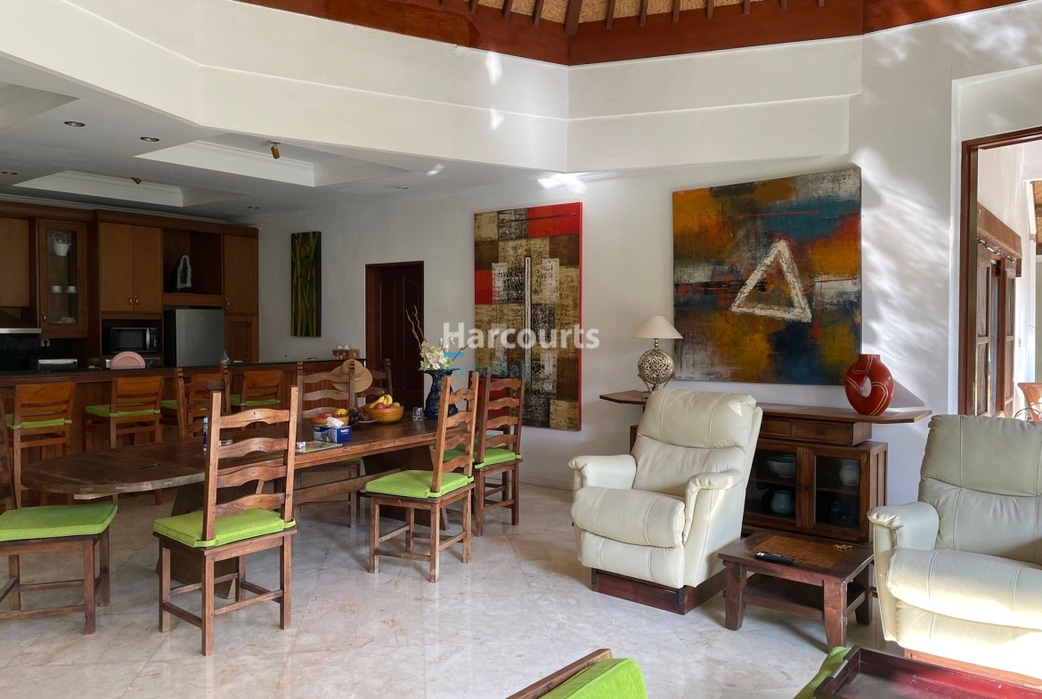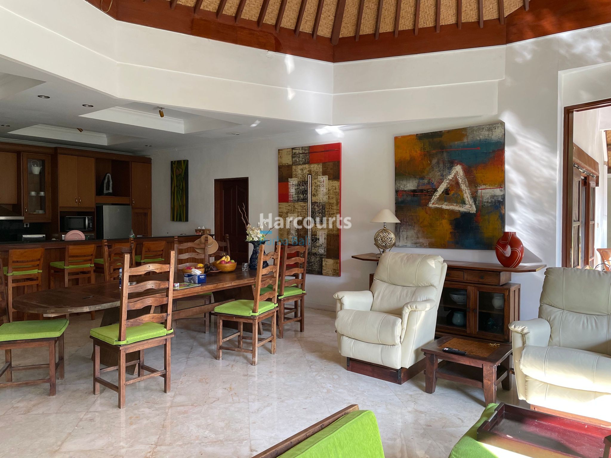 Equally suited to a family home or a holiday rental, the land size is 348 sqm on a quiet leafy street just off the main drag. A traditional design incorporates a semi open air living area overlooking the pool and gardens – perfect for entertaining. Each of the three air-conditioned bedrooms is en suite.