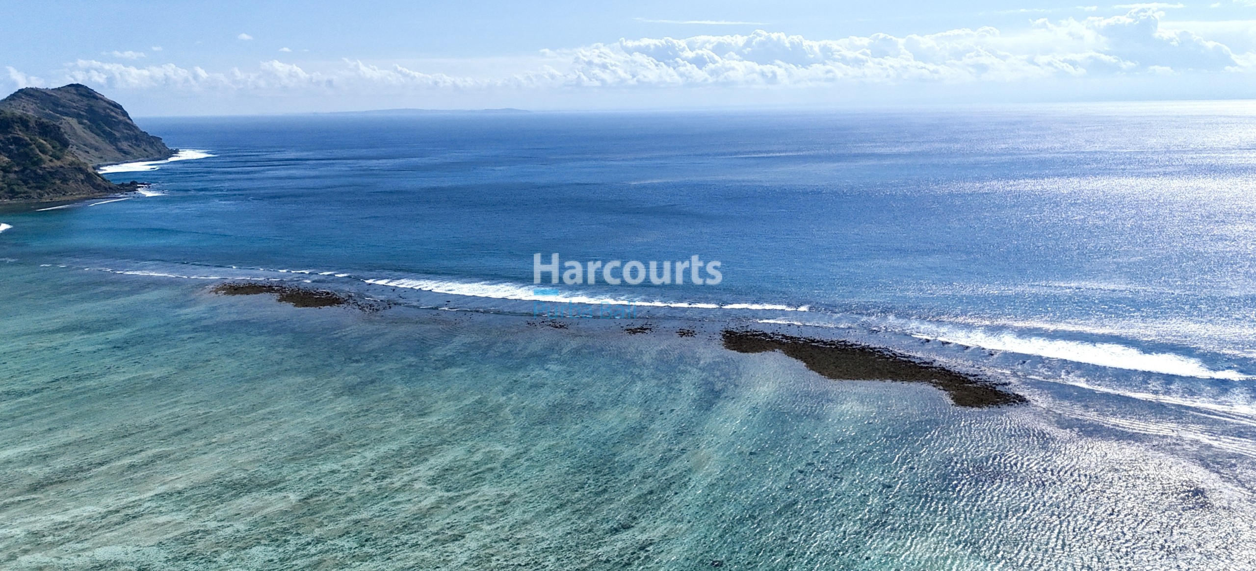 The land is absolute beachfront at Scar Reef Beach in the middle of the pretty Jelenga Bay. Without doubt one of the very best locations on the island featuring a true soft white sand beach for hundreds of metres with the extra pristinely clean aqua coloured waters of the Indian Ocean and the famous Scar Reef surf break directly out front.