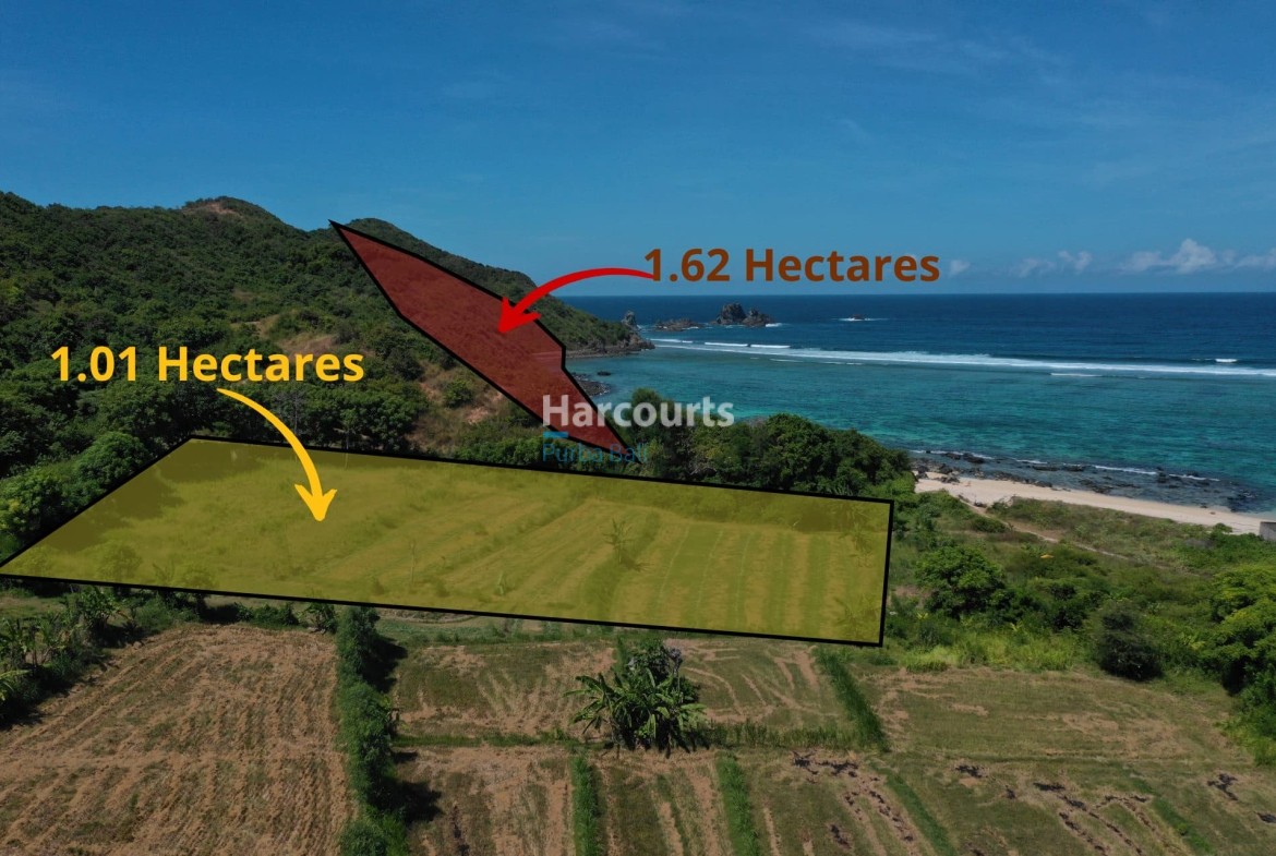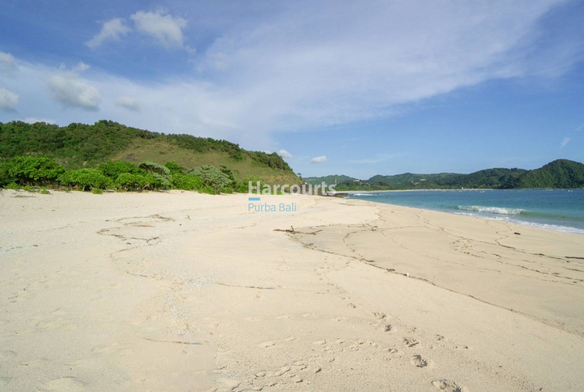 Tampah Beach, South Lombok — an exceptional Freehold (Hak Milik) coastal holding offering approximately 150 metres of absolute beachfront on pristine sands. Set across a generous 263 are (26,300 m²), this gently sloping site presents a rare canvas for a landmark development with uninterrupted ocean frontage and sweeping panoramic views.