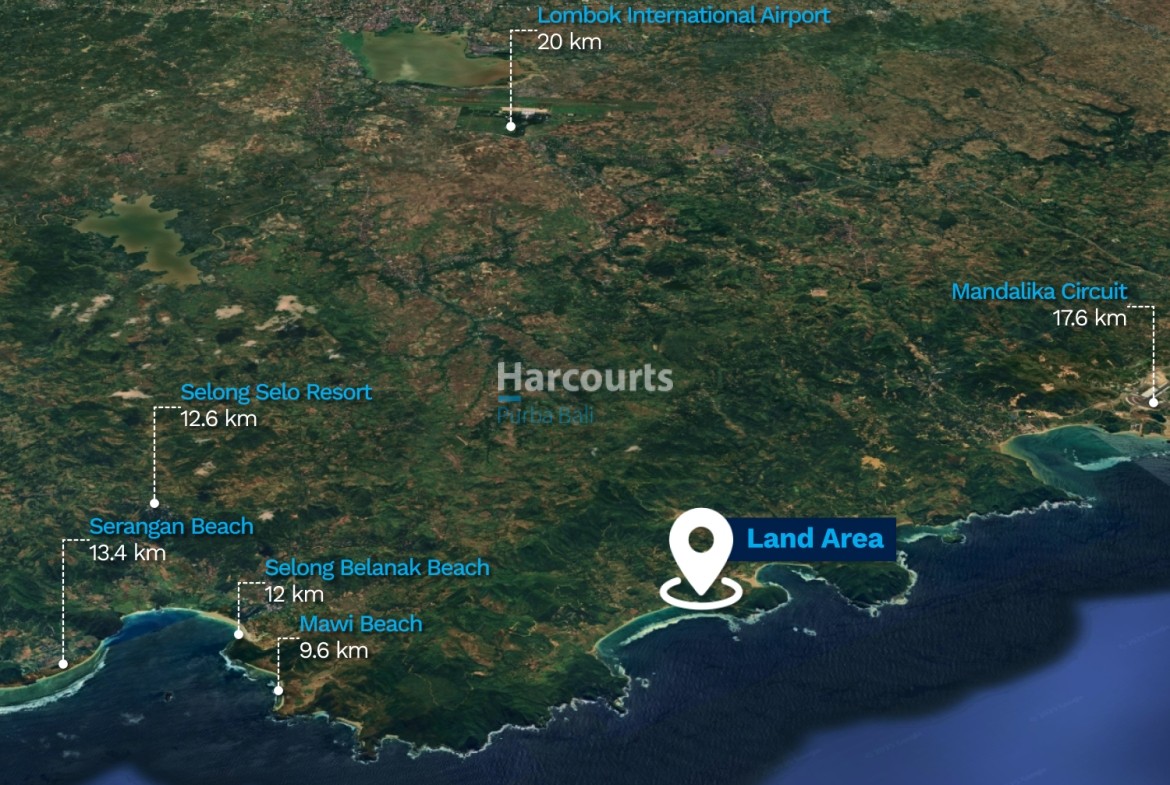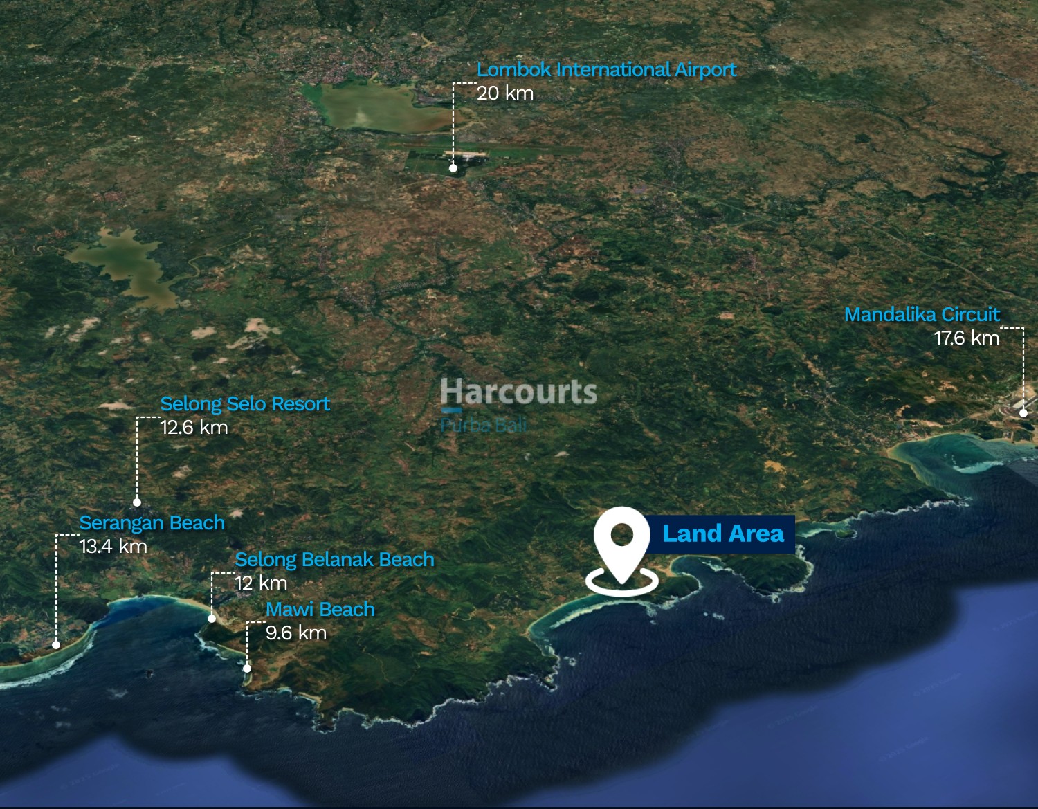 Positioned in a tranquil yet accessible pocket of South Lombok within formal Pariwisata zoning, the land benefits from direct road access with electricity and water available nearby. The combination of unspoiled coastline, verdant hills and a growing luxury tourism market makes this parcel exceptionally well suited to a large-scale resort, private villa enclave or boutique hotel, subject to planning approvals.
