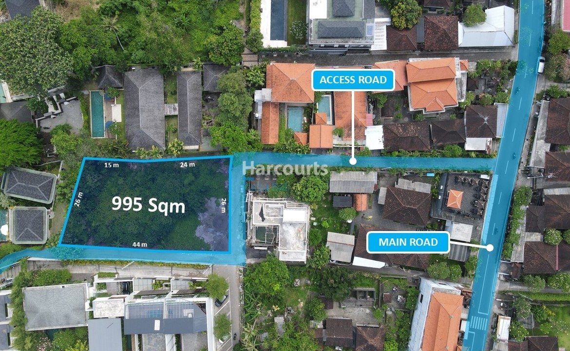 Rarely available in Tiying Tutul: a generous flat development parcel of 9.95 are (~995 m²) offered as Leasehold (Hak Sewa) — 23.5 years remaining. This construction-ready plot presents a superb canvas for a private residence or bespoke villa project, with clear road access simplifying design and build logistics.