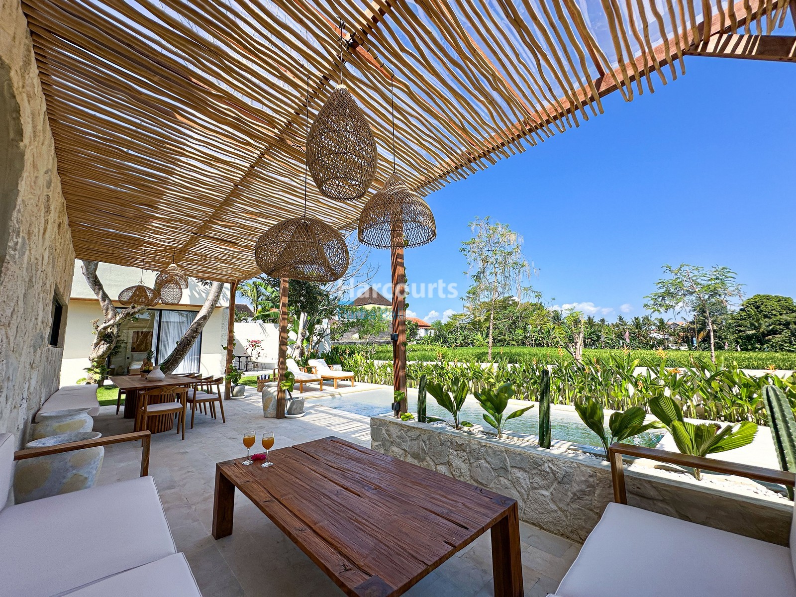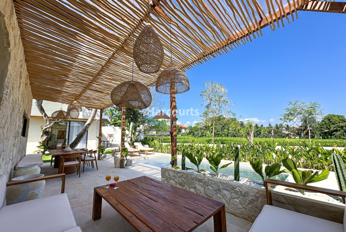 Perfect for alfresco living, the villa offers two outdoor lounges and a shaded dining terrace, all oriented toward the rice fields. It’s a private retreat, yet deeply connected to a thriving area where new cafés, restaurants, and international schools like ProEd Nuanu and Grow In Kedungu are rapidly enriching the local community. With 119 sqm of built space, three bathrooms with rain showers, and onsite parking for a car and multiple motorbikes, the property is offered fully furnished and ready for move-in or rental.