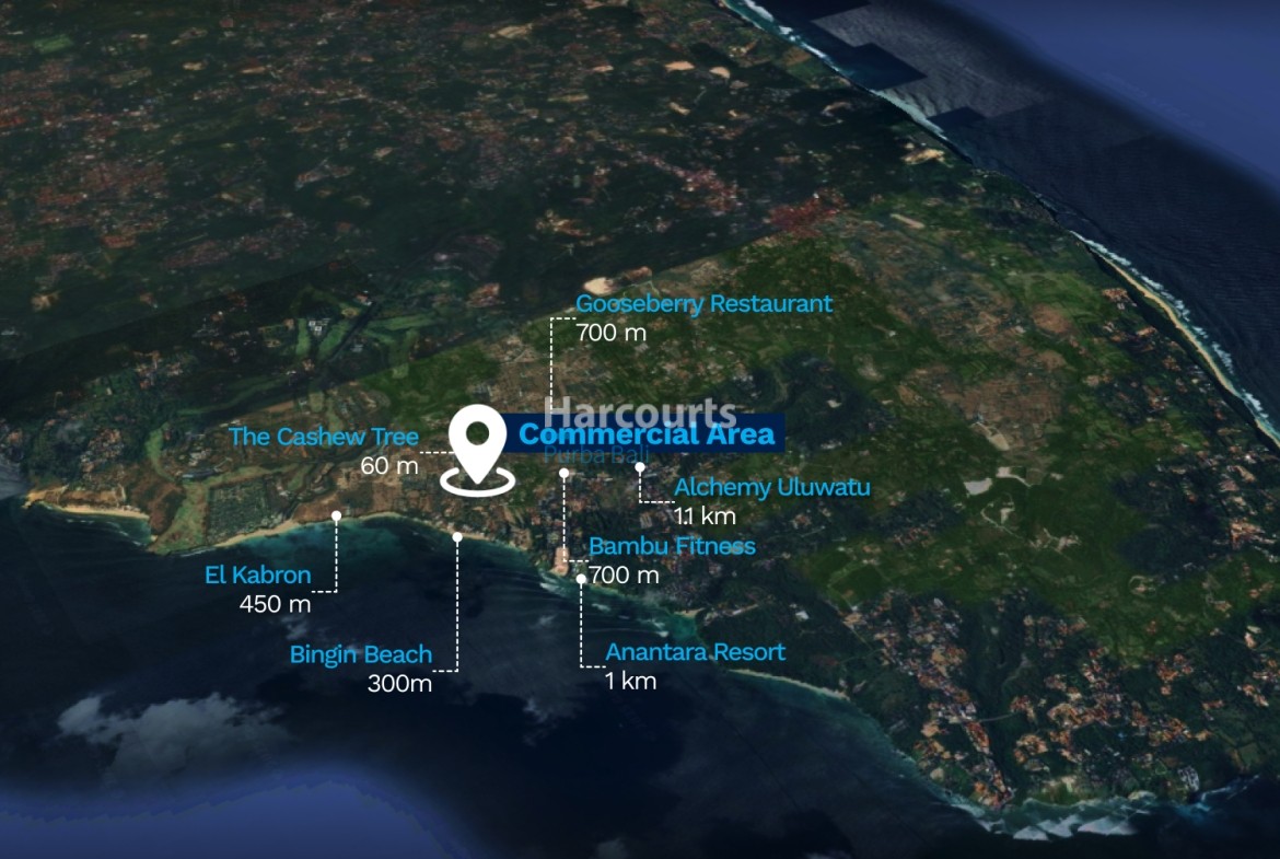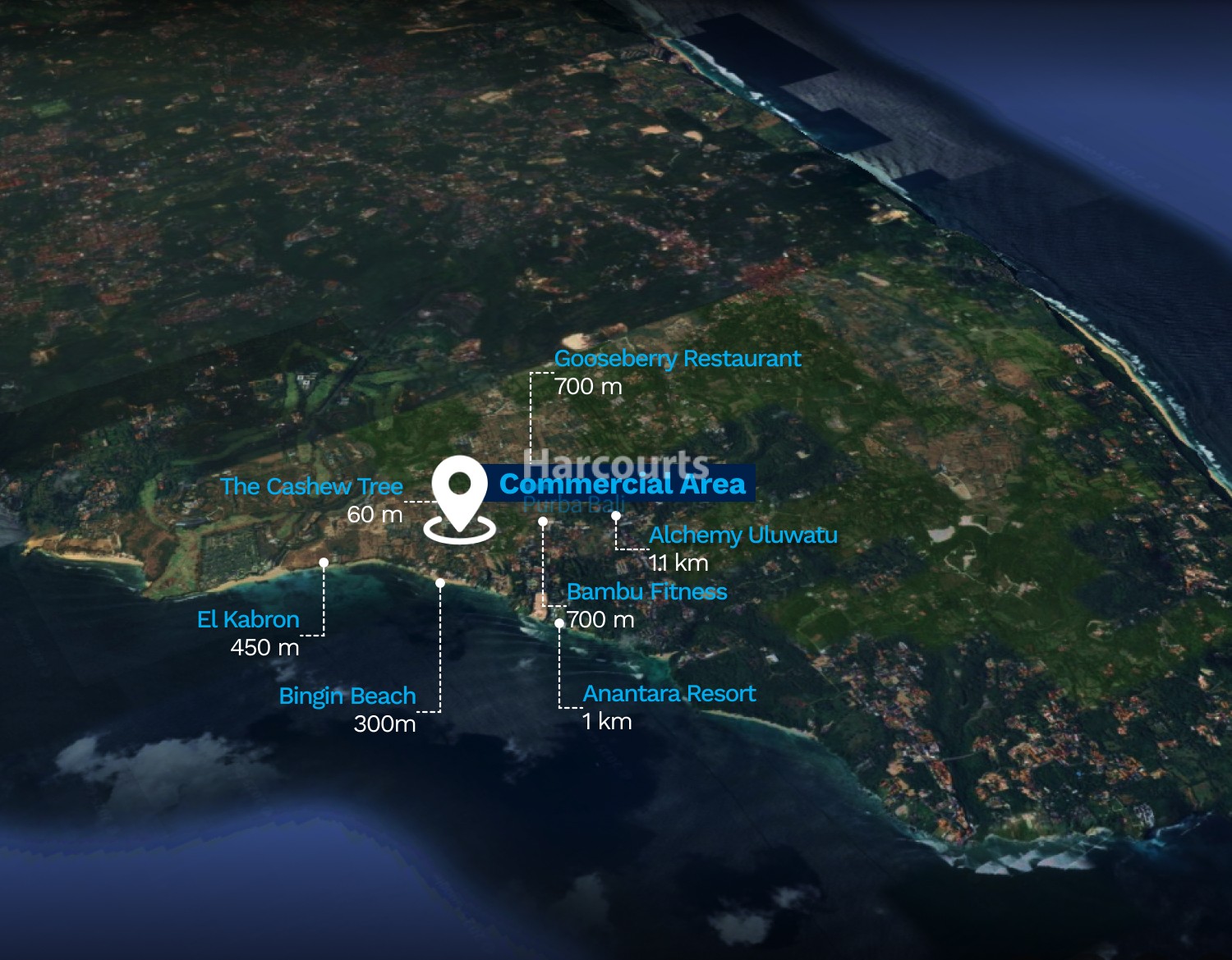 Nearby: Cashew Tree 60 m, Bingin Beach 300 m, El Kabron 450 m, Bambu Fitness 700 m, Gooseberry Restaurant 700 m, Raddison Blu Resort 900 m, Anantara Resort 1 km, Alchemy Uluwatu 1.1 km