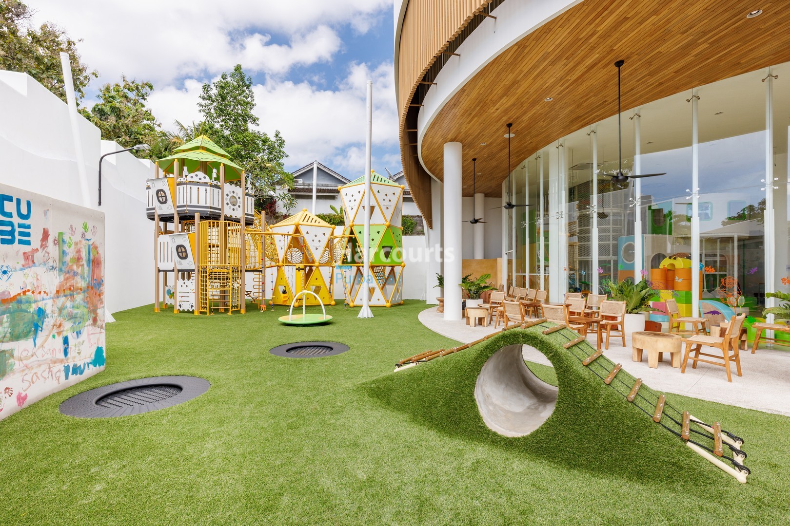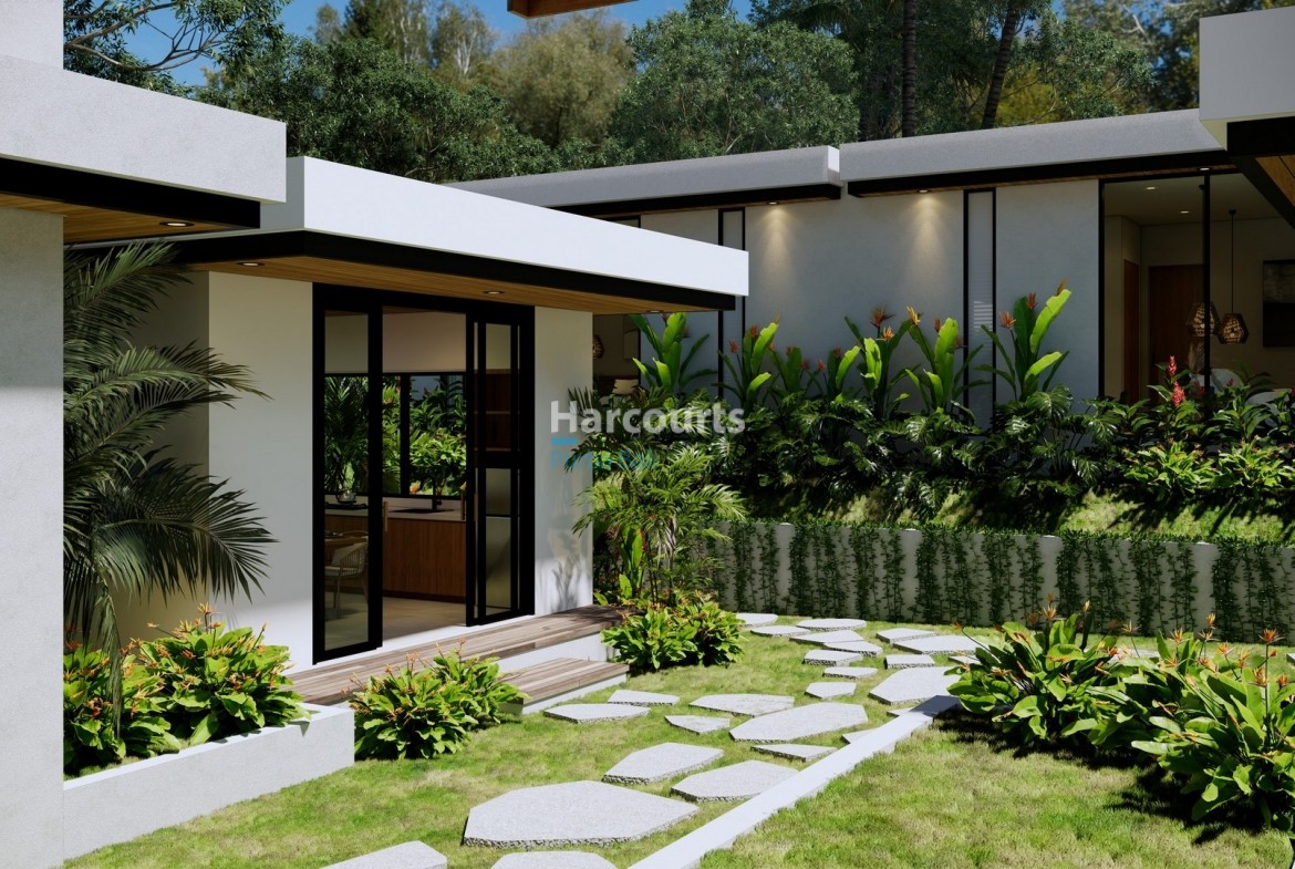 Outside, the cottage is framed by lush tropical planting, a neatly landscaped garden and a stone pathway to the entrance beneath a flat-roofed façade of white and gray with timber accents. Residents enjoy an exceptional resort amenity collection — a Laguna pool, professional Padel centre, family café, surf school, steam and wellness club and a full-day kids club — while the property’s Pariwisata (Tourism) zoning supports short-stay use for strong rental prospects. Offered at Rp 4,040,000,000, this turnkey villa is designed for lifestyle living or a high-yield Bali rental.