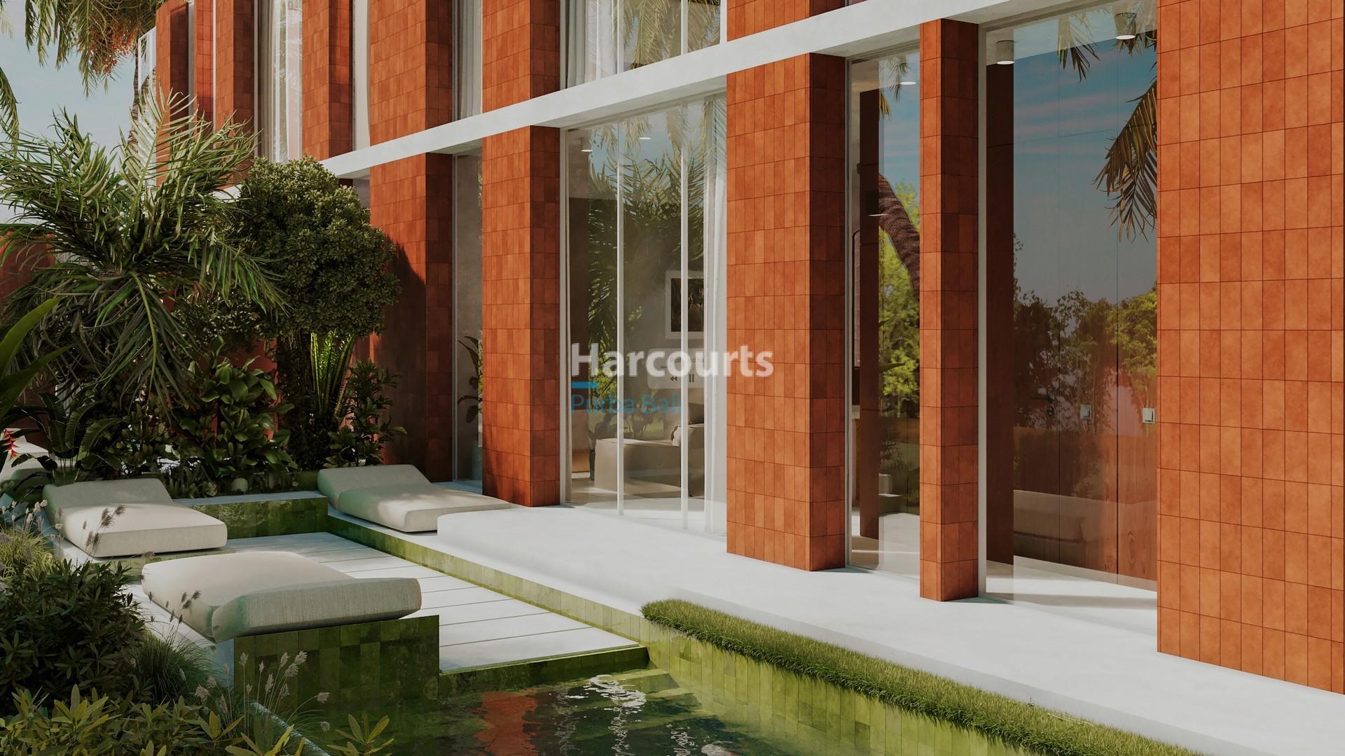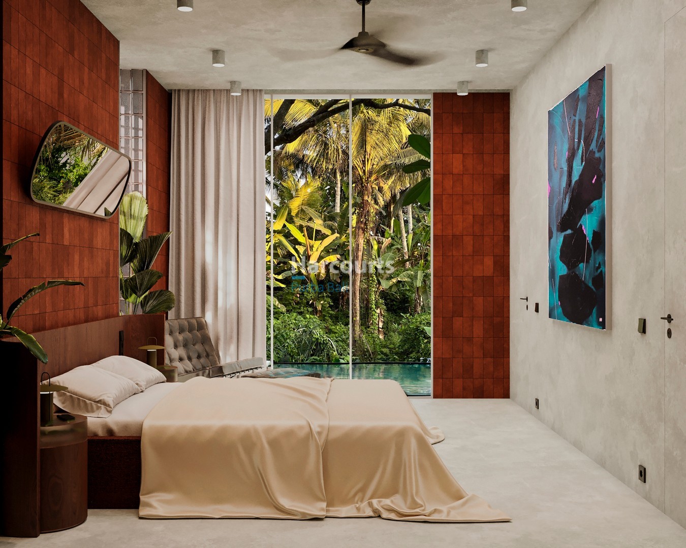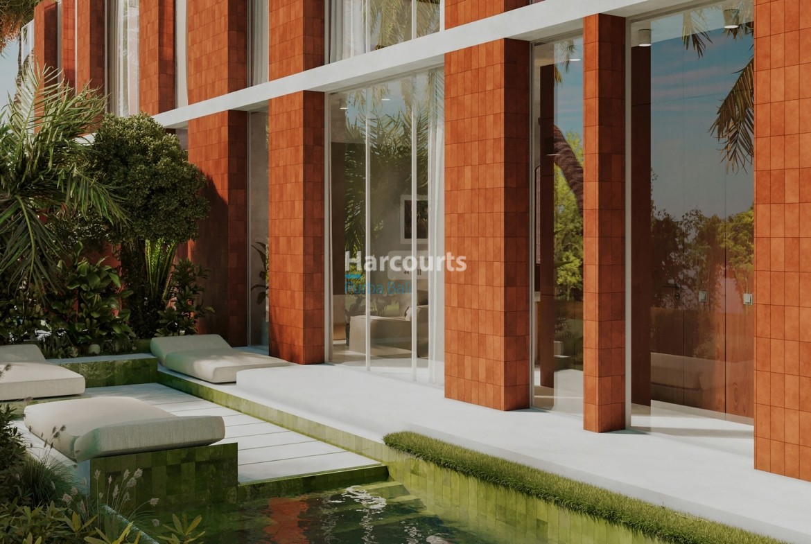 Set along the Sri Wedari corridor just north of Ubud Center, this off-plan three-bedroom, three-bathroom townhouse on Leasehold (Hak Sewa) — 23 years remaining — marries a striking terracotta façade with contemporary design, articulated through generous floor-to-ceiling glazing and an architectural language that references Balinese craft. The development, scheduled for completion in 2026, presents a considered modern home within a landmark complex.