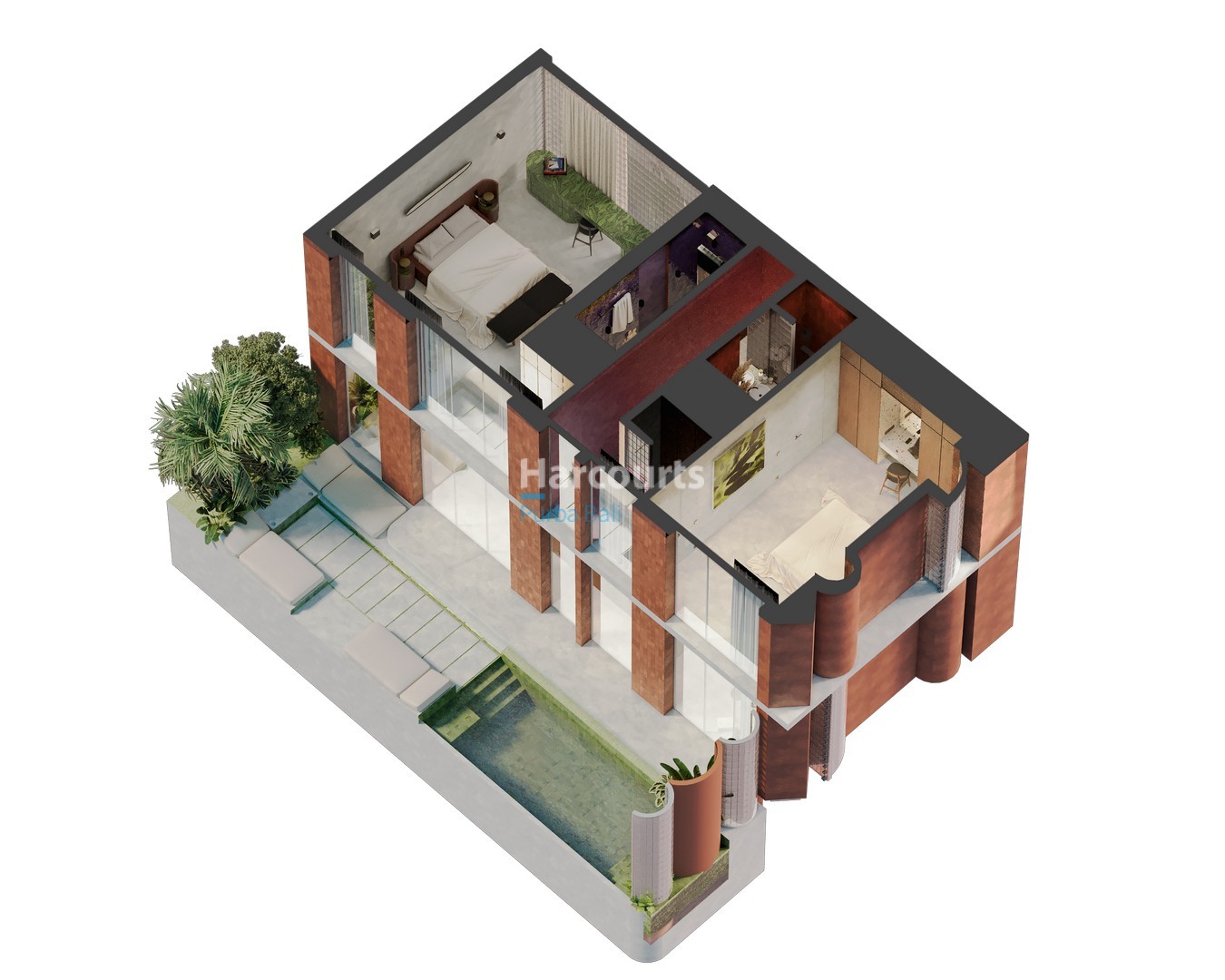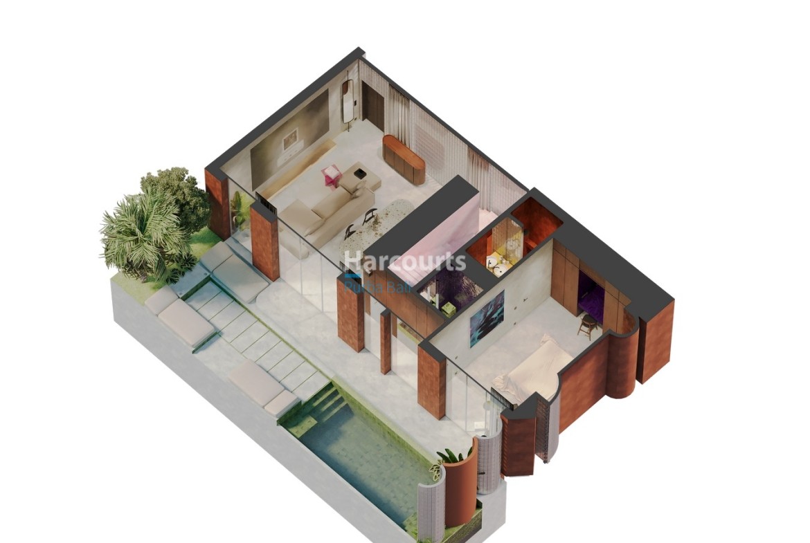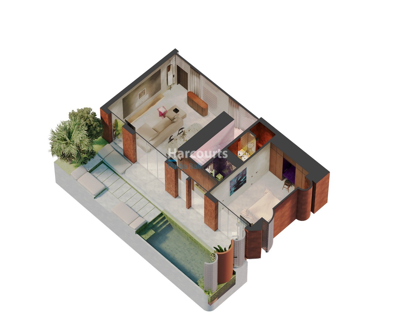 Positioned within Pariwisata (Tourism) zoning — generally permitting short-stay use in designated tourist areas — this turnkey opportunity benefits from an established hospitality operator. Offered at Rp 4,880,000,000, combining design, location, and considered residential detailing. Contact Harcourts Purba Bali to arrange a private viewing.