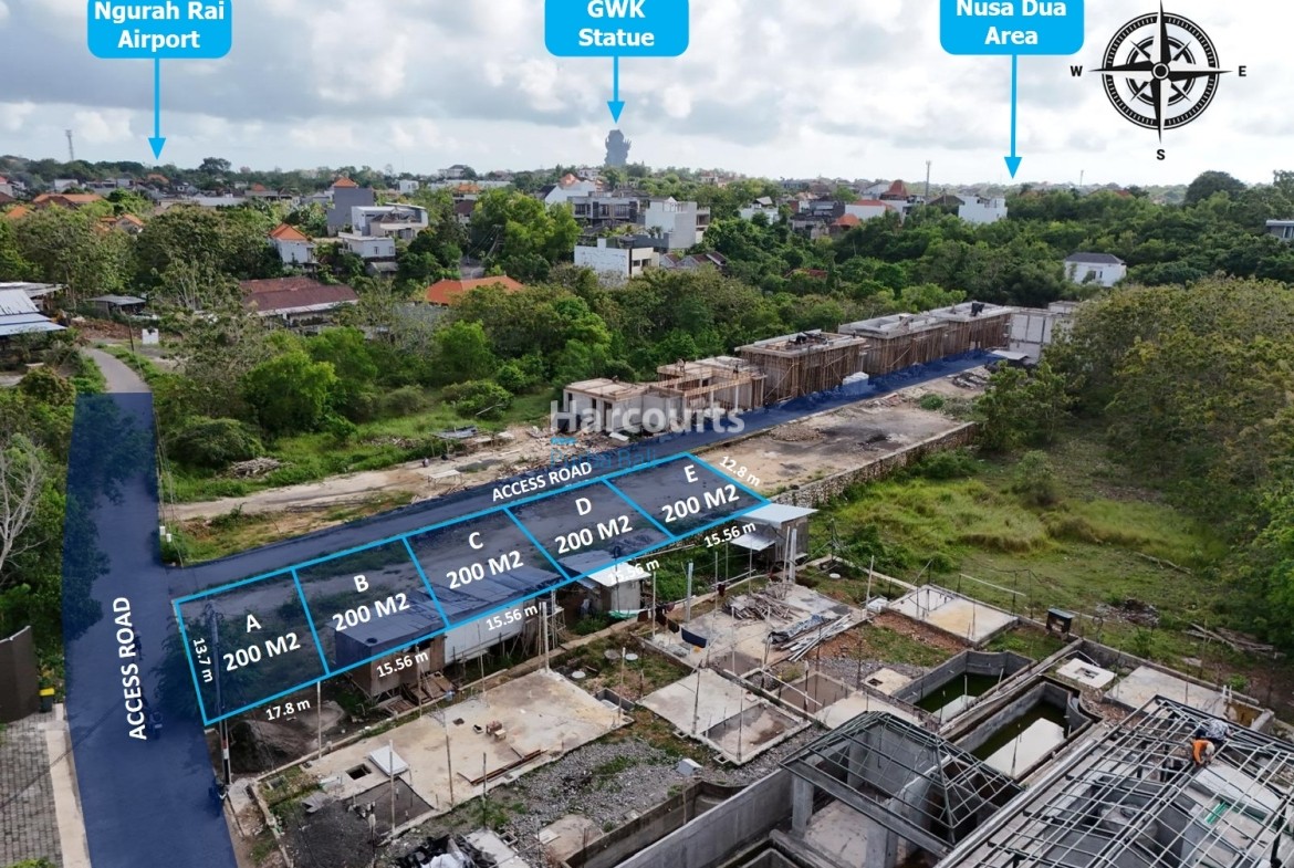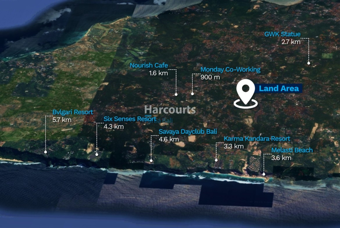 Positioned within a premium Ungasan neighbourhood surrounded by luxury villas and close to celebrated beach clubs and coastal attractions such as Melasti Beach and Karma Beach, this parcel is well suited to a high-end residence or a boutique villa complex aimed at strong rental returns and capital appreciation. Zoned Residential and regularly shaped with defined boundaries, the site is a practical, strategic acquisition in one of the Bukit Peninsula’s most sought-after pockets.