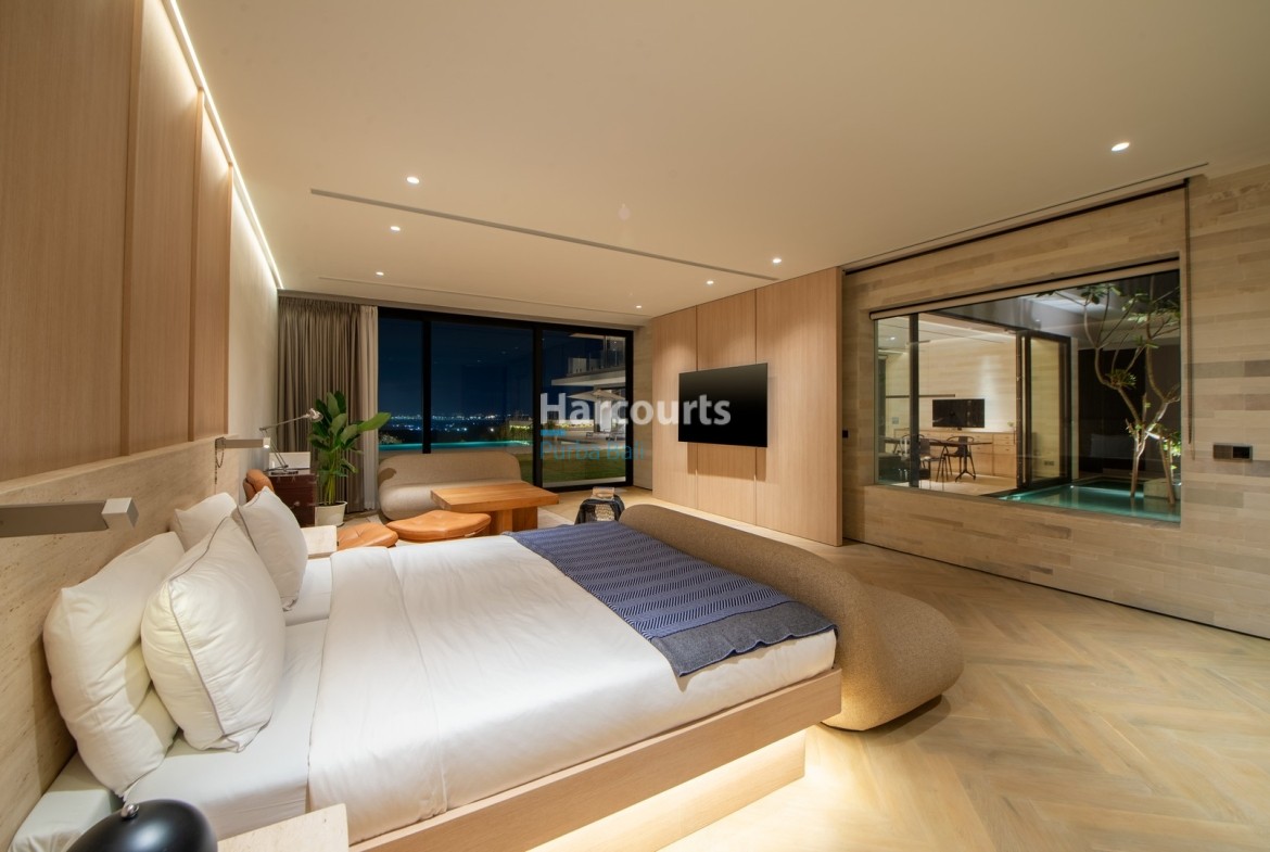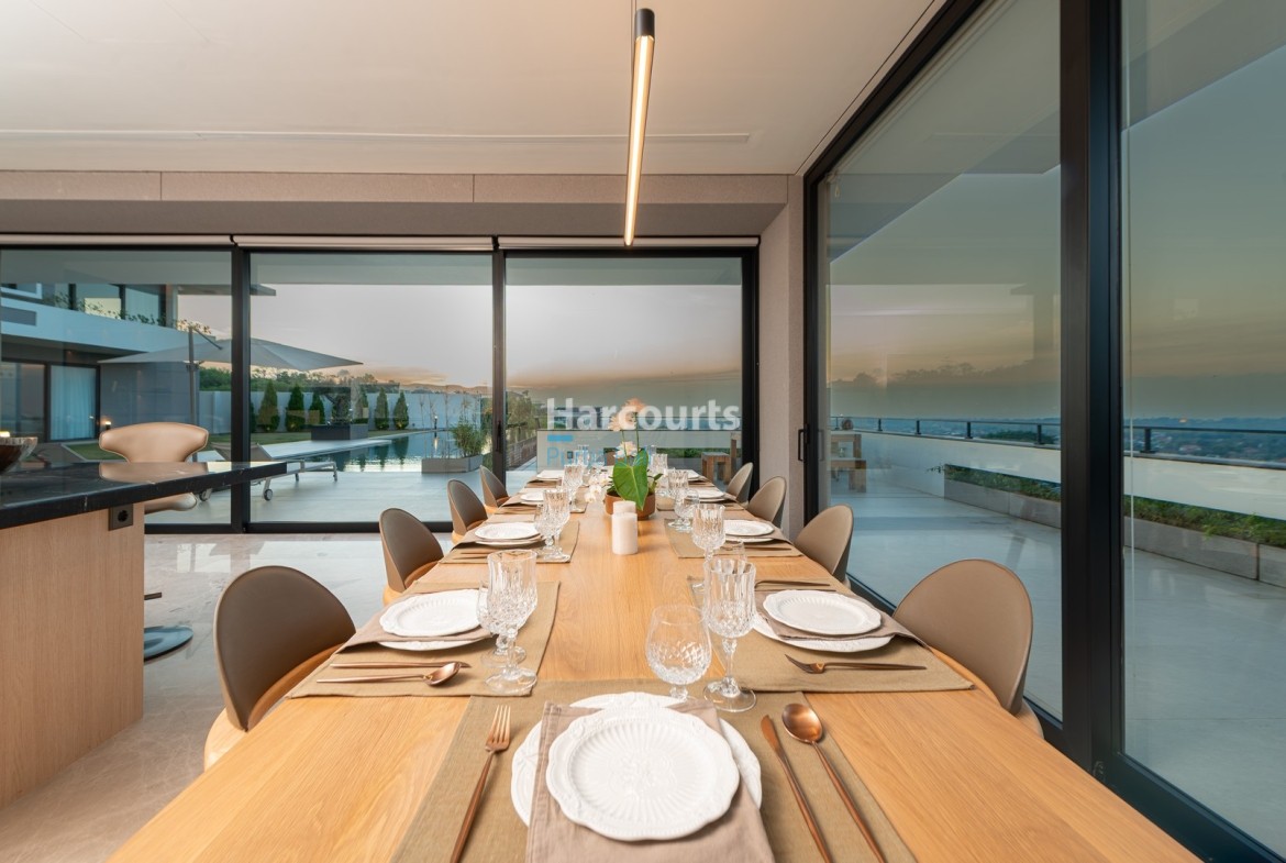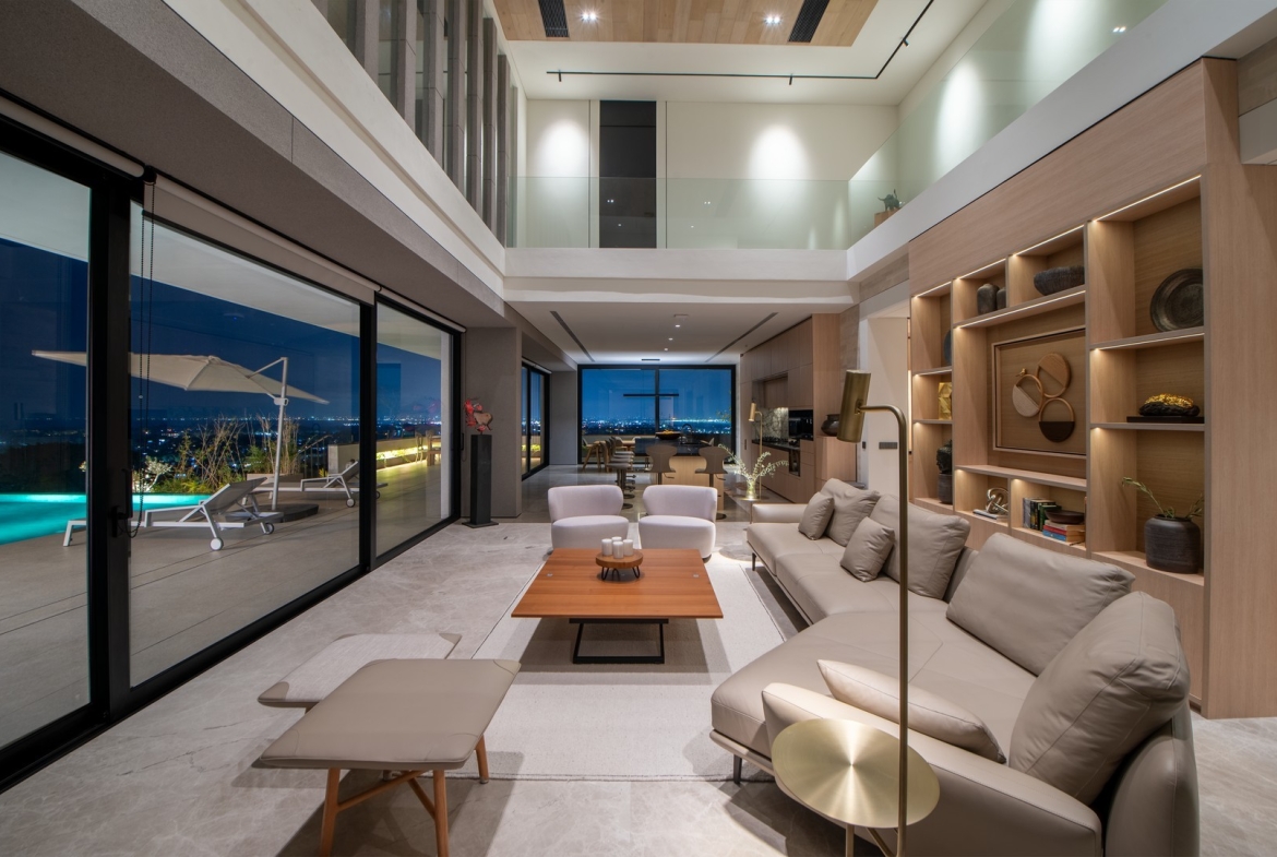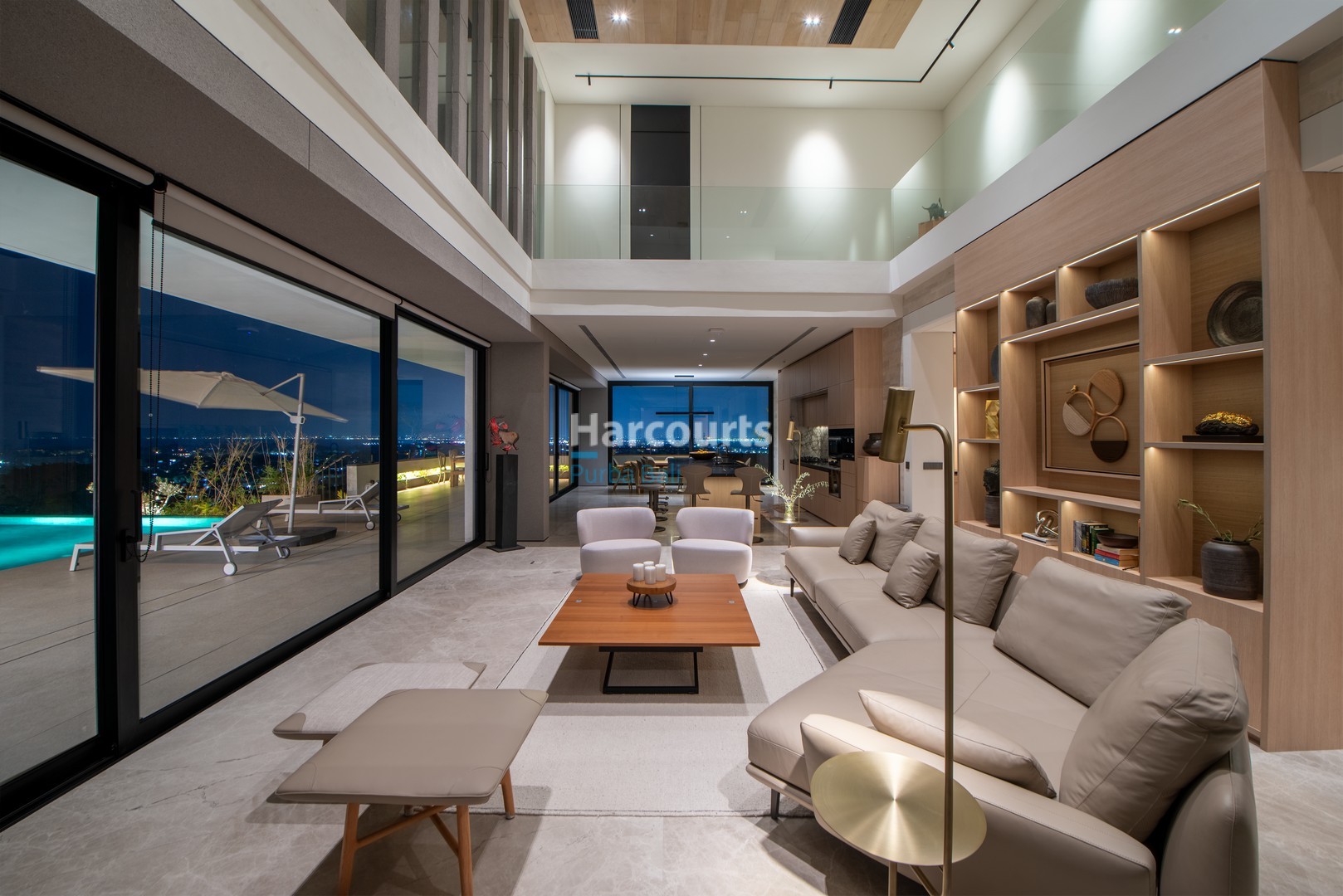 Expansive interiors are framed by high ceilings and floor-to-ceiling glass, creating seamless indoor–outdoor flow and abundant natural light. A professional chef’s kitchen, dedicated wine gallery, and exclusive wellness zone — complete with ice bath and steam room — make this a truly distinctive residence.