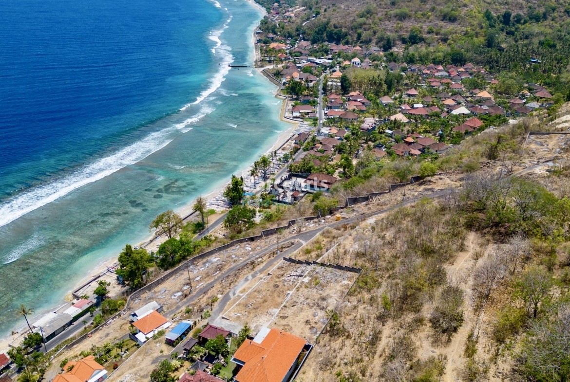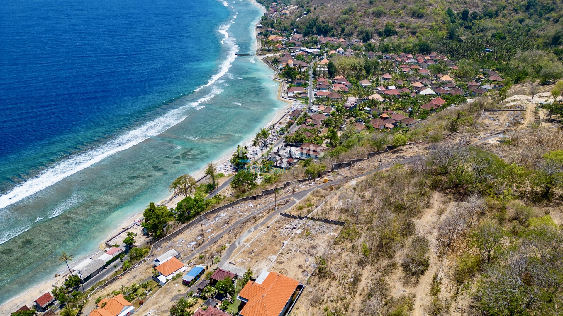 About to kick off construction, the development site for the villas is in a elevated hillside position in the locality of Batu Nunggal, well known for its fishing villages and old time vibe. Mesmerising unobstructed views across the deep blue seas all the way to Karangasem Bali in the north and the famous Mt Rinjani in the east on Lombok. Less than a hundred metres to the beach below perfect for parking your outrigger on or mooring your boat off. Quality dining establishments such as Chill Penida close by, the biggest village on the island of Sampalan less than 15 minutes by scooter with its new marina and the iconic Atuh Beach 30 minutes away. Peak season sees 7000 tourist arrivals/departures daily at Sampalan ensuring a high demand for accommodation particularly at the higher end which is certainly a niche market on Nusa Penida currently.