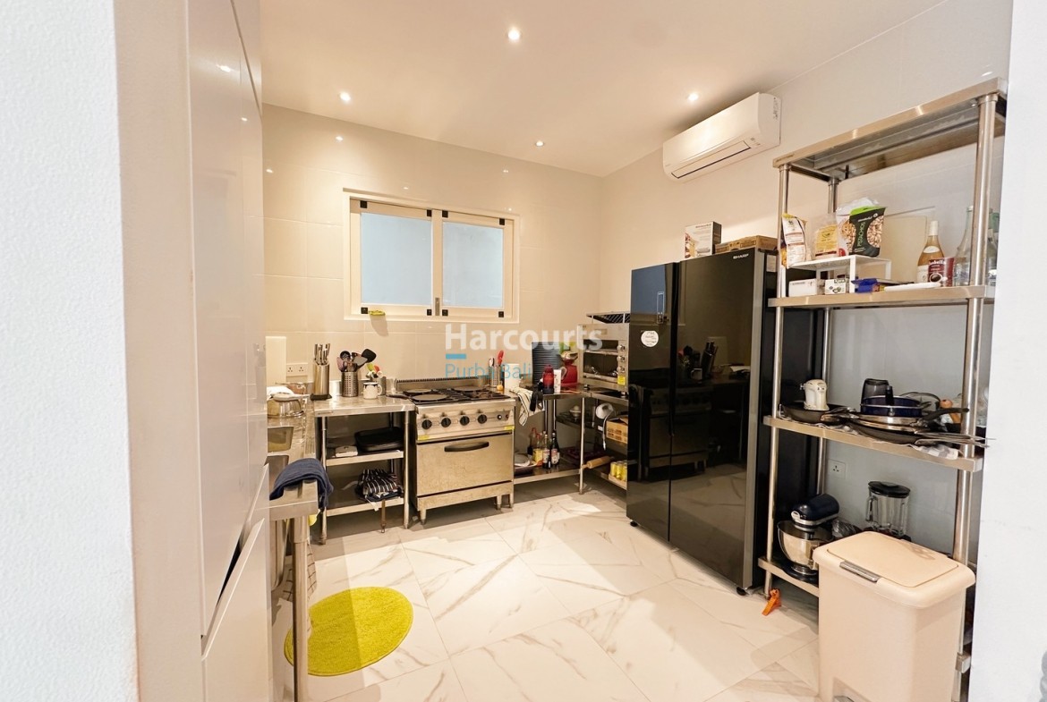 Access is via a private paved road, with secure parking for one car. The real draw here is convenience. You’re minutes from Berawa’s top supermarkets, cafes, beach clubs, and international schools — a location that appeals just as much to digital nomads and holidaymakers as it does to families looking to settle in Bali.