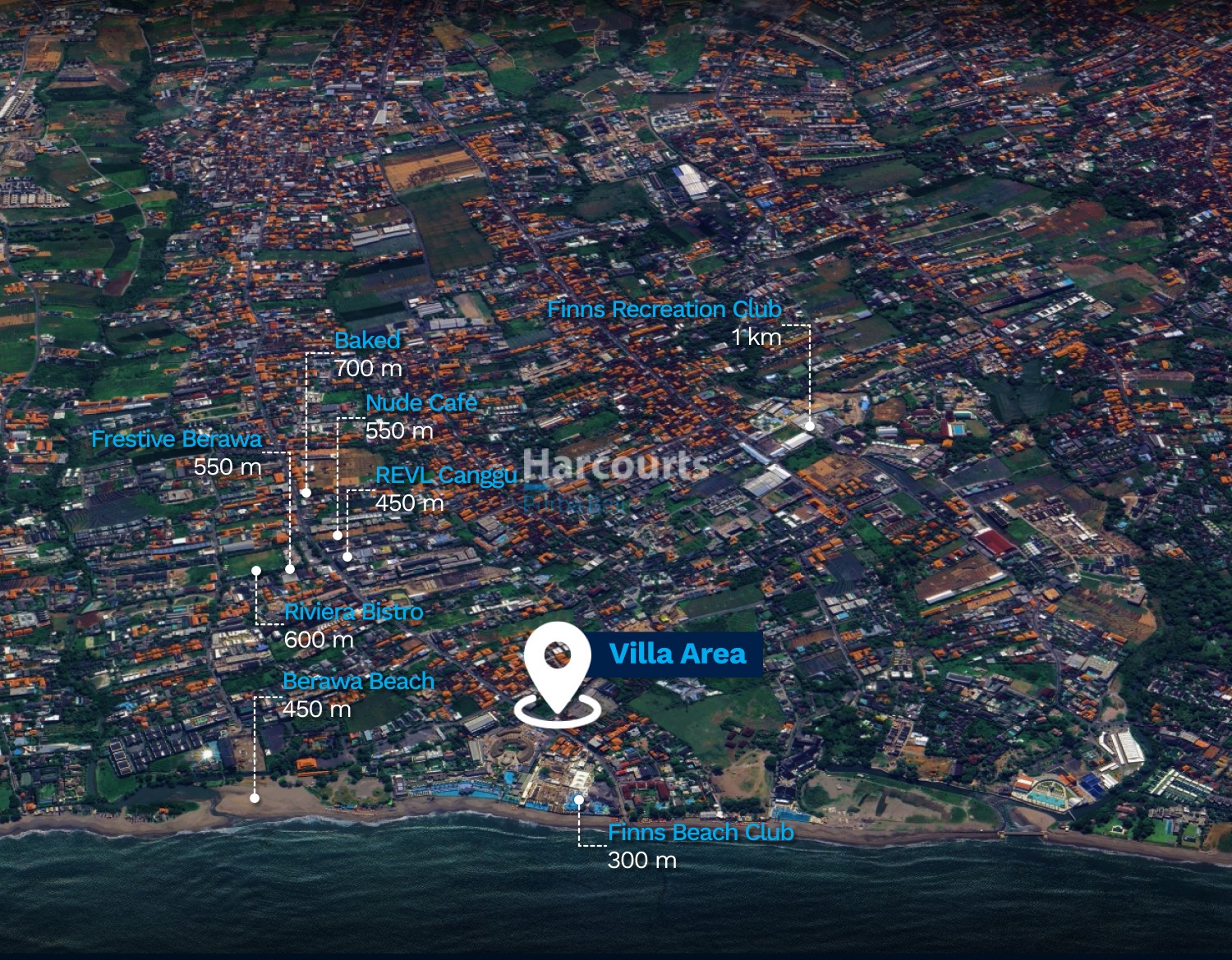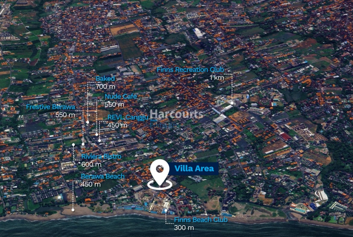 Nearby: Finns Beach Club 300 m, Berawa Beach 450 m, REVL Canggu 450 m, Frestive Berawa 550 m, Nude Cafe 550 m, Riviera Bistro 600 m, Baked 700 m, Finns Recreation Club 1 km