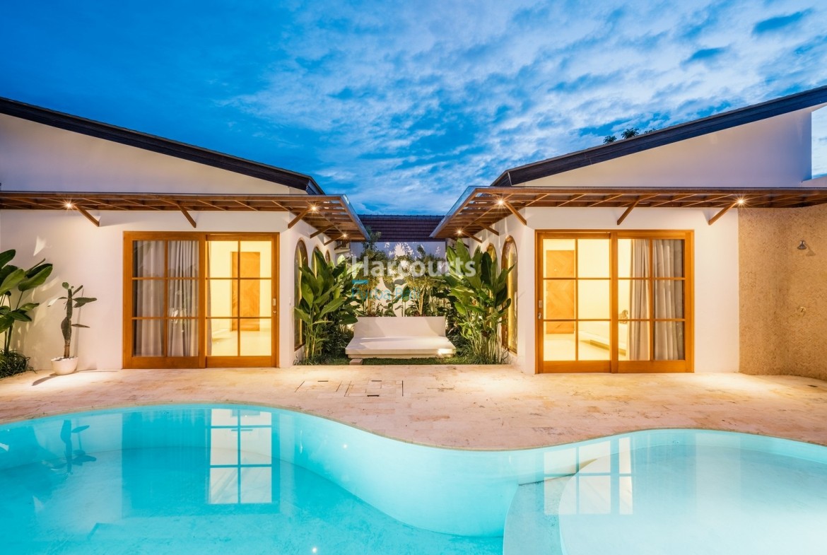 Set in sought-after Berawa, this modern, fully furnished villa on Leasehold (Hak Sewa) — with approximately 18 years remaining — presents a turnkey investment with a standout curved-edge private swimming pool and a single-level, contemporary layout. Built in 2022 and offered configured for short-stay use, the property combines low-maintenance living with immediate revenue potential.