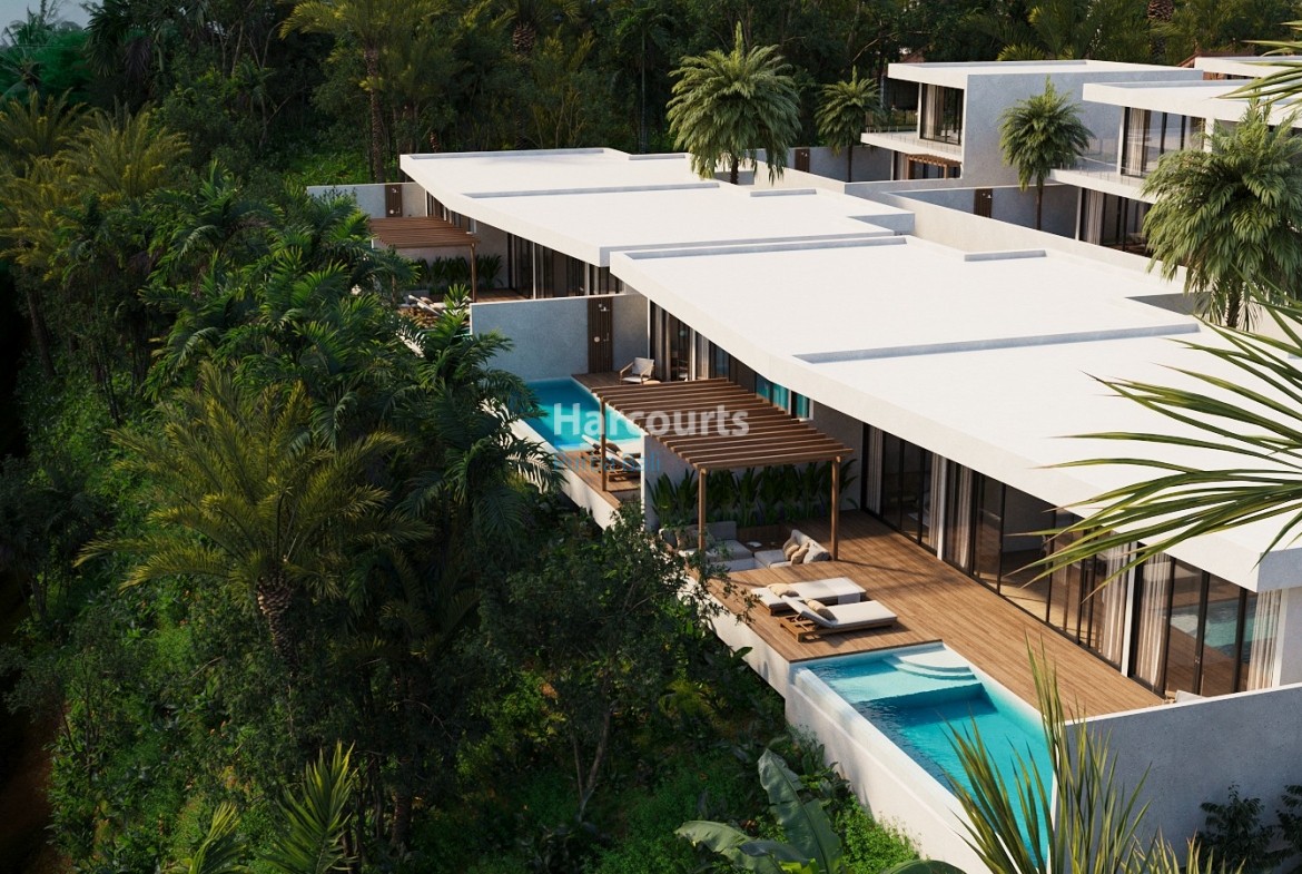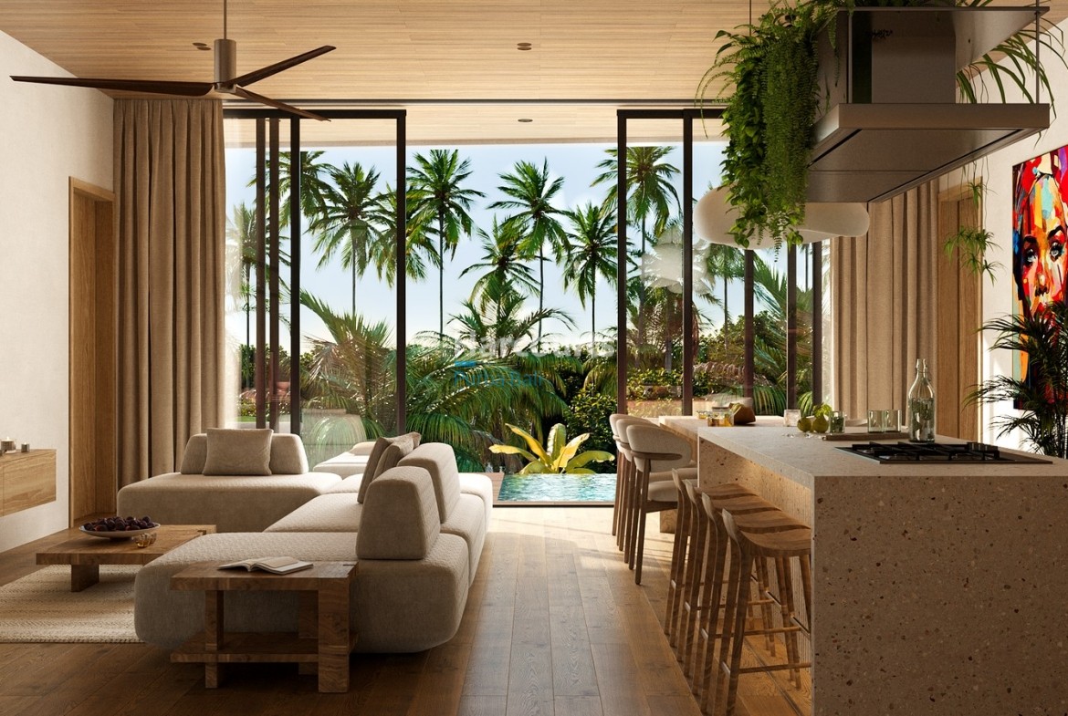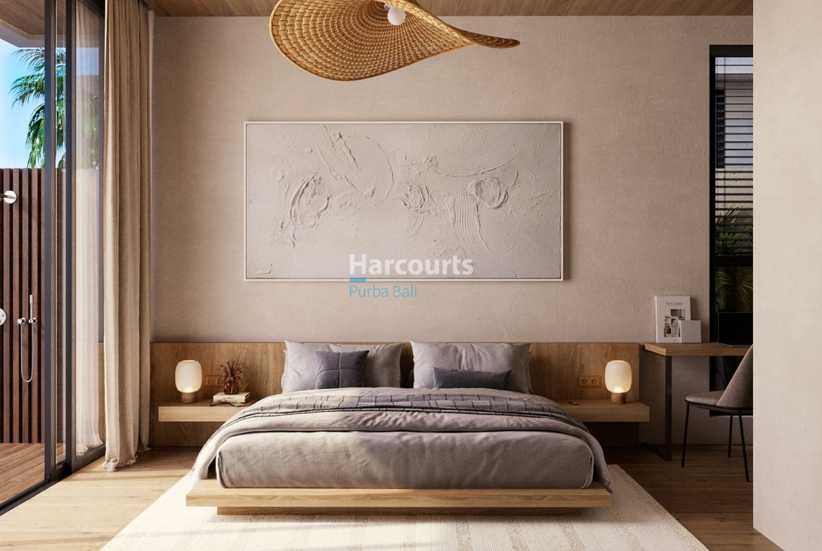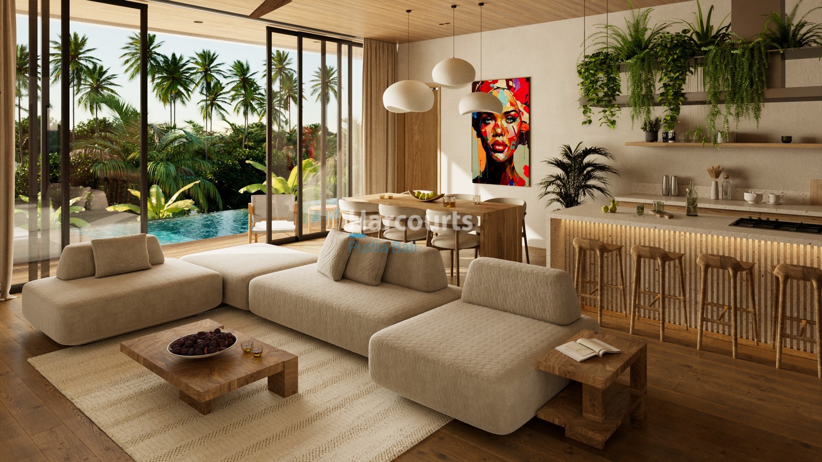 Strategically positioned along a meandering river, each villa seamlessly blends contemporary aesthetics with nature’s tranquility. Spacious interiors feature fully equipped kitchens with central islands, while outdoor chillout areas invite residents to embrace Bali’s renowned indoor-outdoor lifestyle.